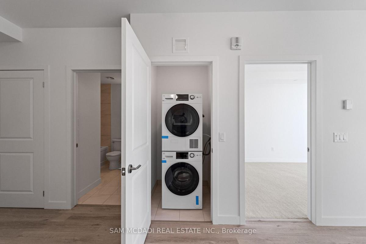 Welcome to Unit 505 at 461 Green Road in Stoney Creek - a brand-new 1+1 bedroom condo located just steps from Lake Ontario and the QEW. This bright and spacious suite offers an open-concept layout with a modern kitchen featuring new Frigidaire stainless steel appliances, a double sink, stylish backsplash, and generous storage. The kitchen flows seamlessly into the living room, where floor-to-ceiling windows fill the space with natural light and open onto a private balcony. The primary bedroom also includes floor-to-ceiling windows and soft carpeting for added comfort, while a sleek 4-piece bathroom provides a convenient shower-and-tub combination. Additional highlights include in-suite laundry with a brand-new GE washer and dryer set, a versatile den perfect for a home office, and one parking space. Residents enjoy exceptional building amenities, including a stunning rooftop deck with BBQs, lounge seating, and breathtaking views of Lake Ontario and the Toronto skyline. Ideally located between the QEW and the waterfront, this condo offers unmatched convenience - minutes from beaches, parks, and nature trails, and close to major amenities such as Hamilton Beach (2 minutes), Confederation GO Station (5 minutes), Mohawk College (5 minutes), Walmart (8 minutes), Eastgate Square (10 minutes), and Niagara Falls (35 minutes). Experience modern lakeside living at its finest - the perfect opportunity to own a brand-new condo in an unbeatable location.