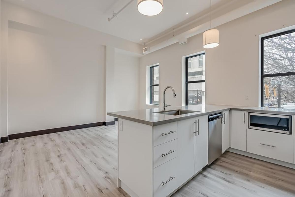Downtown Hamilton living! This well-kept 2-bed, 1-bath suite blends modern style with historic charm, featuring laminate floors, exposed brick, and a quartz kitchen. In-suite laundry and locker. Steps to shops, dining, transit, and trails. AAA+ tenants only.
