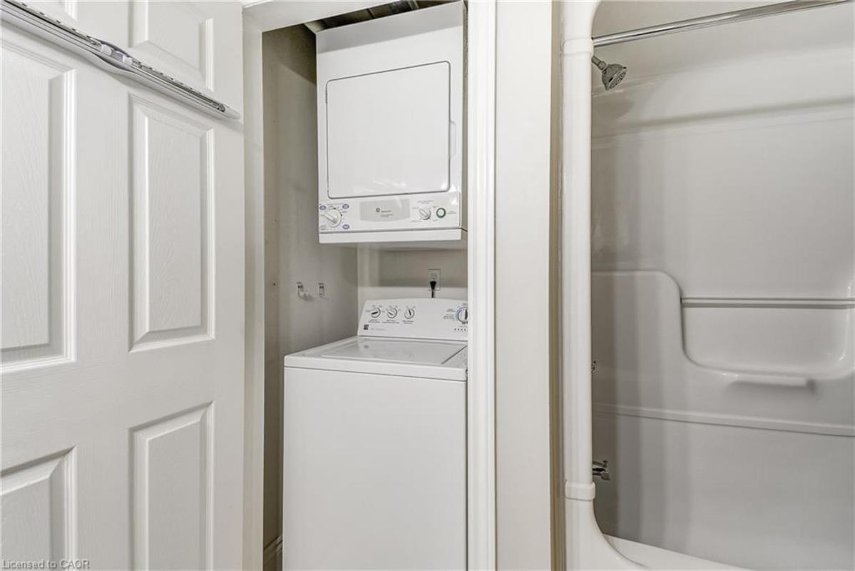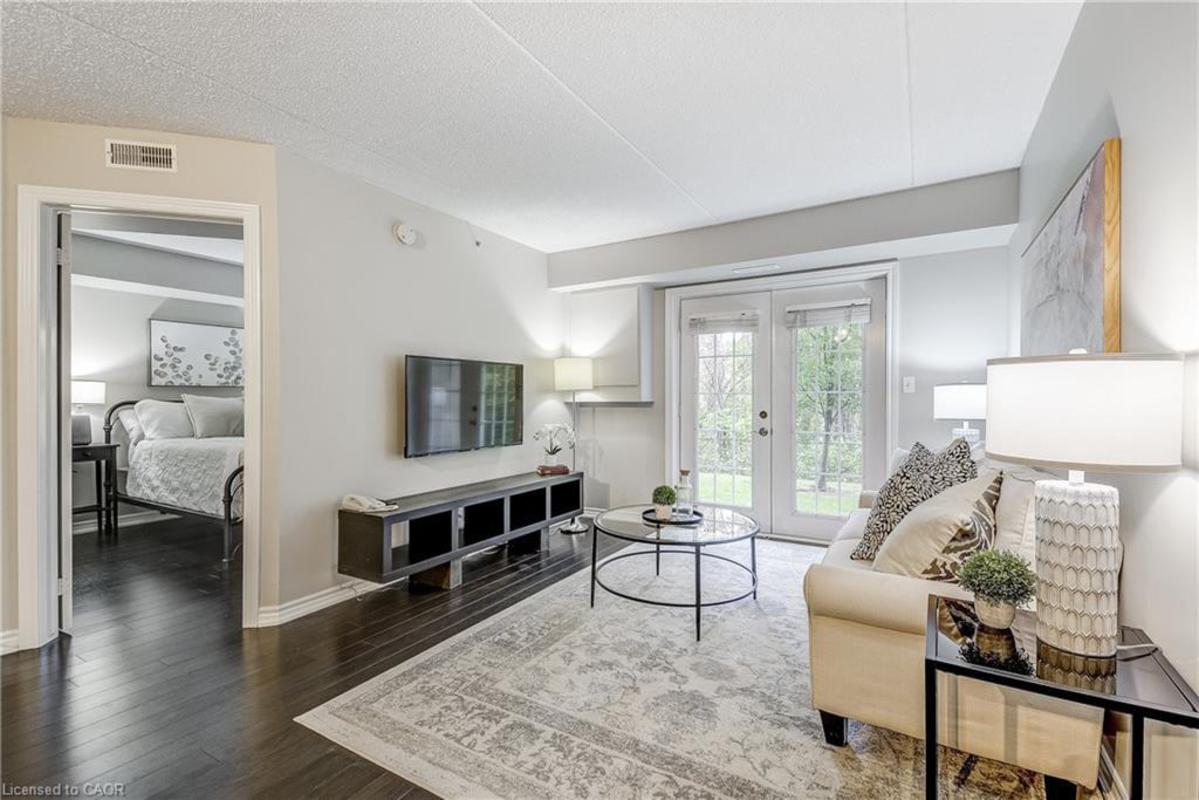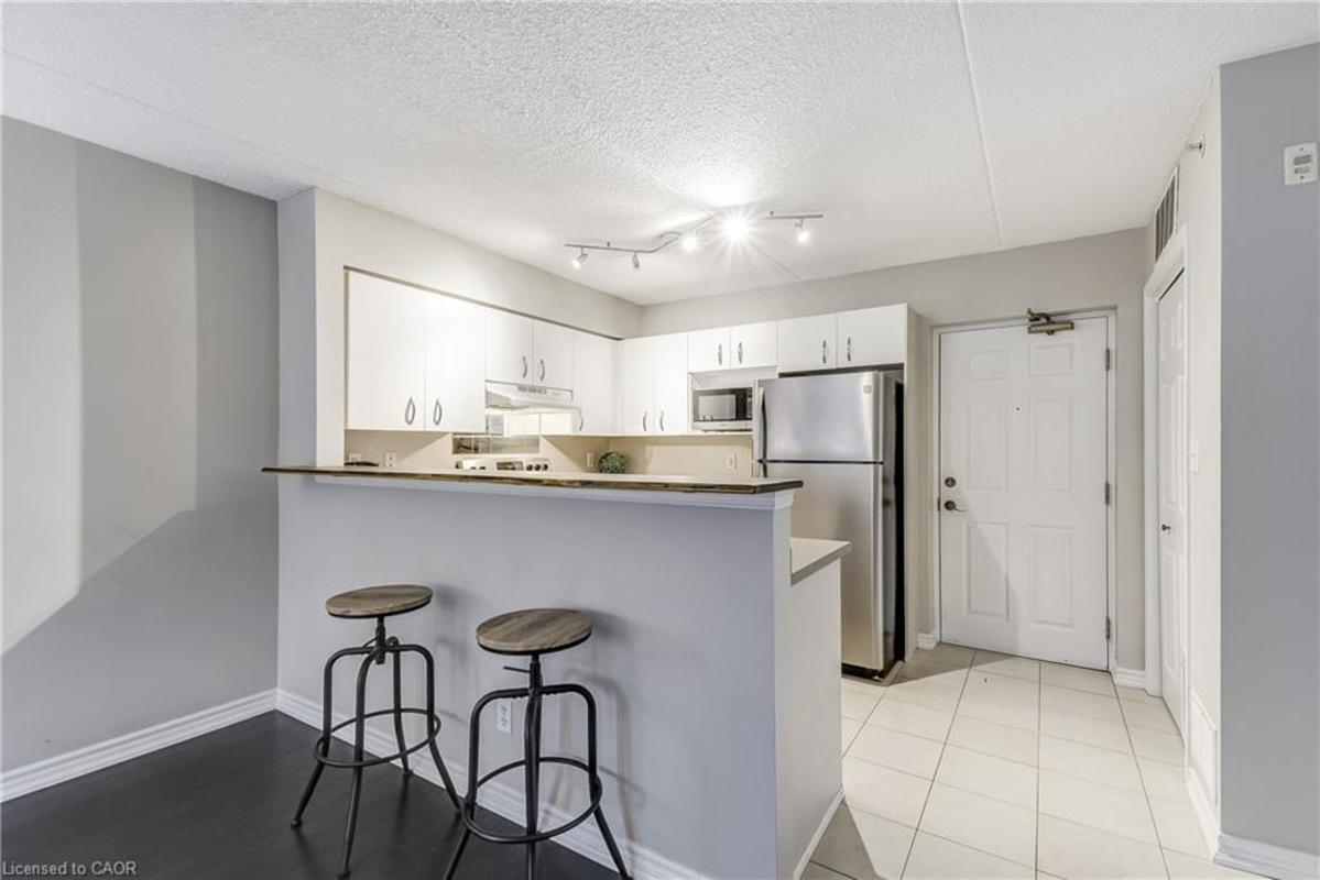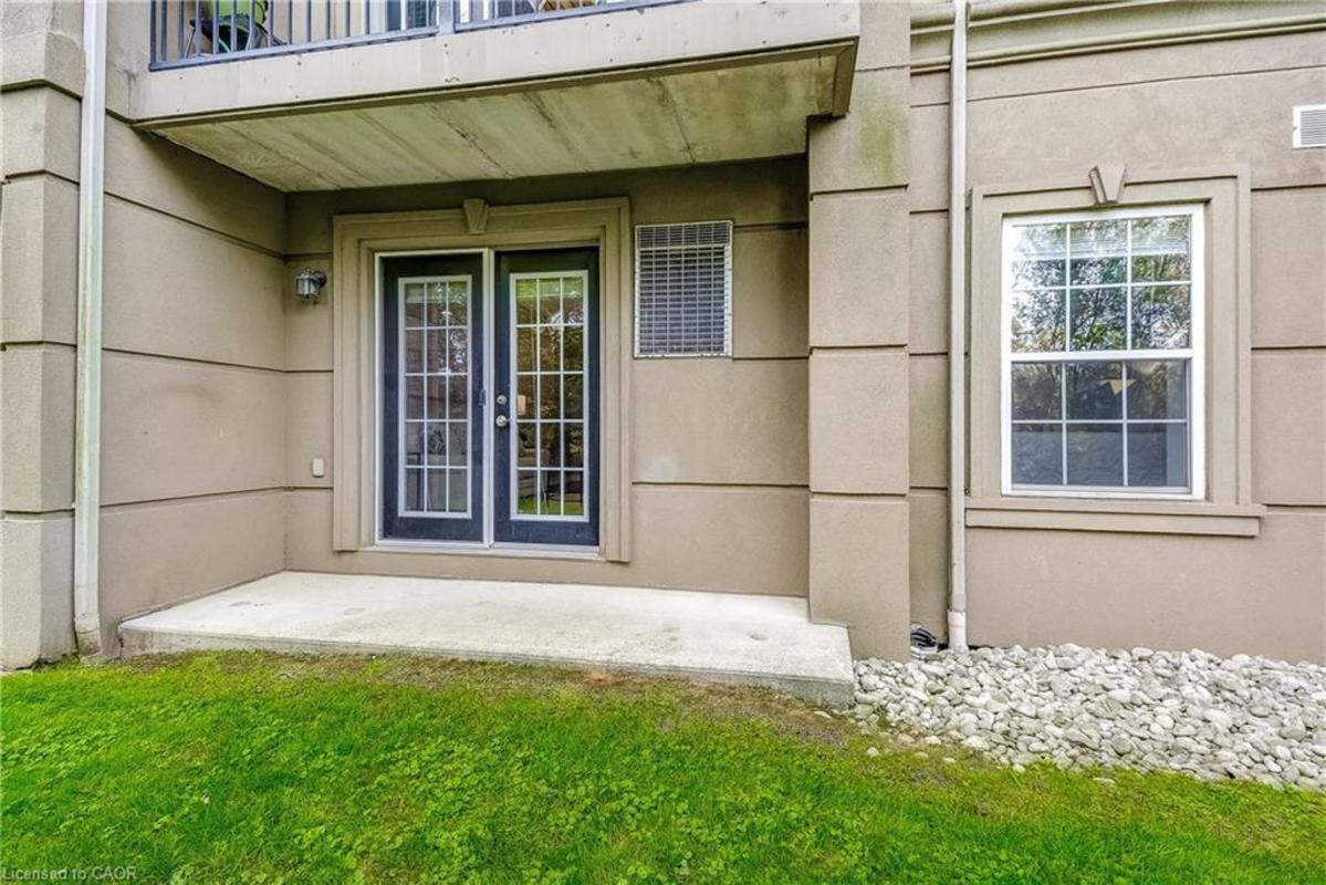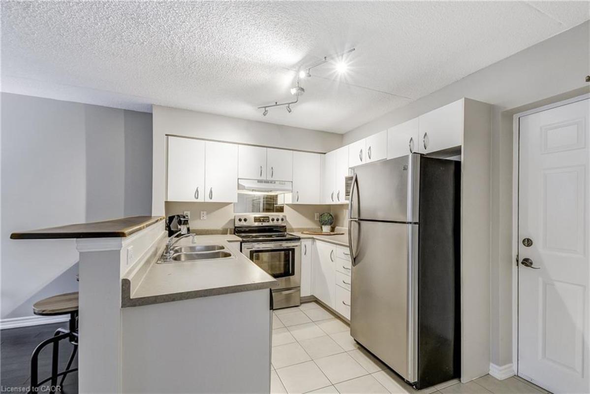 Welcome to Orchard Uptown, where quiet living meets everyday convenience. This main-level 1-bedroom, 1-bathroom condo is tucked into a peaceful area of the complex, offering a level of privacy that's hard to find-especially with a patio that looks out over ravine and greenspace rather than parking or traffic. The private patio is a true extension of the living space and a rare feature for a condo. Being on the main level and backing directly onto greenspace means easy outdoor access without elevators, stairwells, or long common hallways-a practical advantage for everyday living and especially convenient for those with a dog who want quick, stress-free access outside. Inside, the layout is bright, functional, and easy to live in. The open living area offers flexibility for daily routines and entertaining, the kitchen offers ample storage and workspace, and the bedroom is generously sized and comfortable. In-suite laundry adds convenience, and the Kitec plumbing has been professionally removed, offering added peace of mind. The unit includes one underground parking space and a storage locker, and the building is well managed with low condo fees. Residents enjoy access to a fitness centre, sauna, and party room, along with ample visitor parking. Location is a major advantage. Shopping, coffee shops, restaurants, and everyday essentials are located directly across the street. Commuters will appreciate quick access to the QEW, 407, and Appleby GO Station, while nearby trails and Bronte Creek Provincial Park provide excellent options for outdoor walks and recreation. A well-maintained condo offering privacy, main-level convenience, and direct access to greenspace-this is comfortable, low-maintenance living in one of Burlington's most established condo communities.