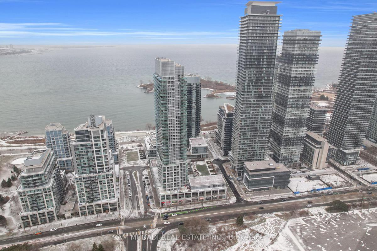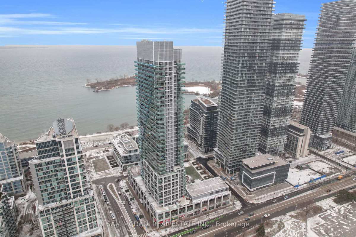 Welcome to Penthouse 1-16 Brookers Lane, a stunning waterfront residence offering exceptional natural light and breathtaking, unobstructed lakefront views. This sun-filled 2 bedroom, 2 bathroom penthouse offers an ideal sense of space and flow, complemented by two private balconies overlooking the skyline and Lake Ontario. Residents enjoy full-service, resort-style amenities including 24-hour concierge and security, an indoor pool, fitness centre, sauna, rooftop deck and garden, party and media rooms, guest suites, and visitor parking, all within a well-managed building. Additional amenities include community BBQ areas, a game room, bike storage and car wash facilities available at an additional cost. Elevator access is provided throughout the building, and water is included in the maintenance fees. Designed for both everyday living and entertaining, the open-concept living and dining area features floor-to-ceiling windows, chevron hardwood flooring, an ensuite laundry and seamless indoor-outdoor access. The chef-inspired kitchen is beautifully appointed with granite countertops, integrated appliances, sleek cabinetry, and a centre island, making it ideal for hosting or unwinding. The primary bedroom is a serene retreat with a walk-in closet and a private three-piece ensuite. The second bedroom offers flexibility for guests, a home office, or growing needs and is conveniently located near a full four-piece bathroom. Step outside to either balcony to enjoy the lake breeze and panoramic views. Ideally situated in the vibrant Humber Bay Shores community, this home is just steps from waterfront trails, Humber Bay Park, marinas, cafés, restaurants, grocery stores, and transit, with quick access to Lake Shore Boulevard, the Gardiner Expressway, and downtown Toronto.