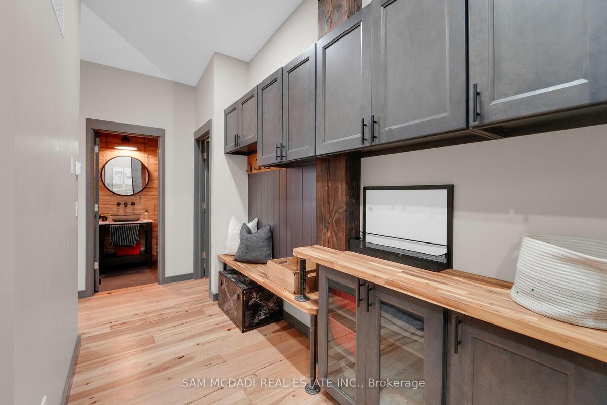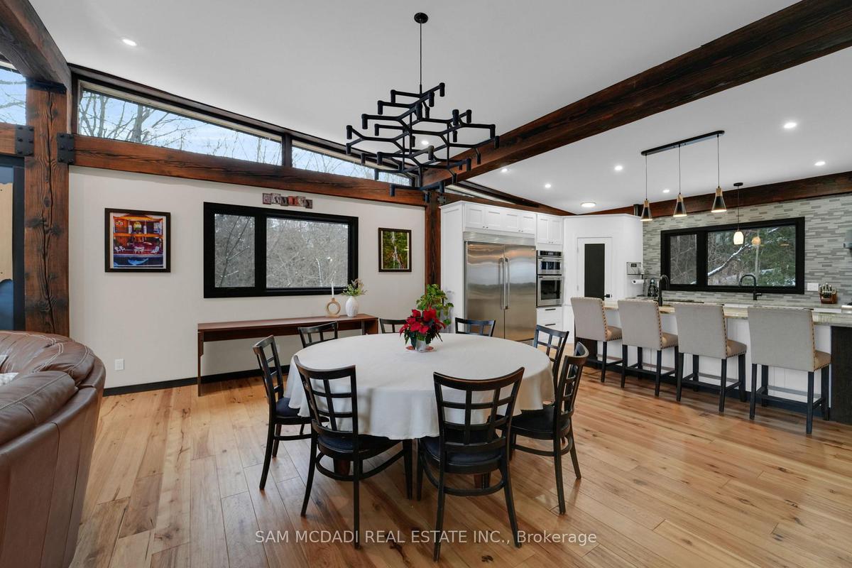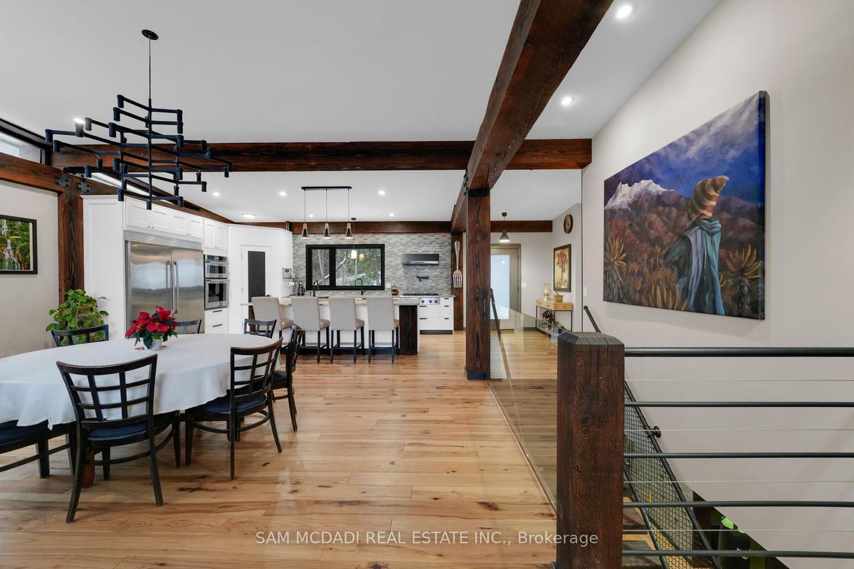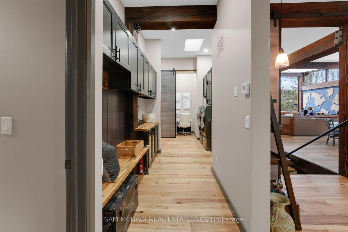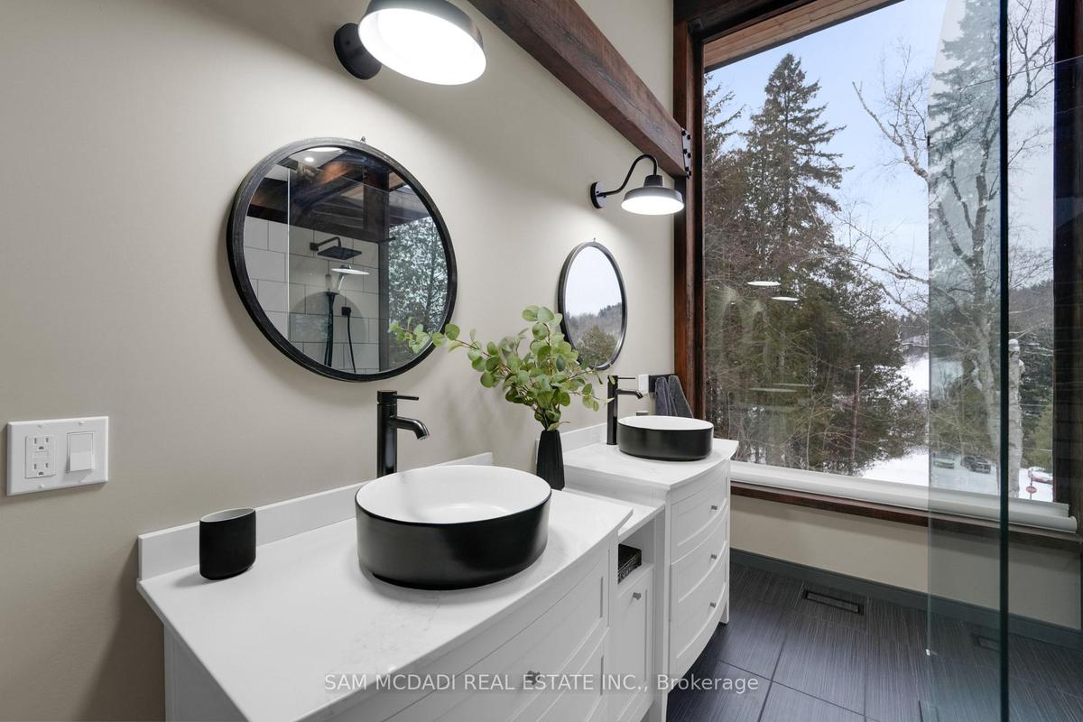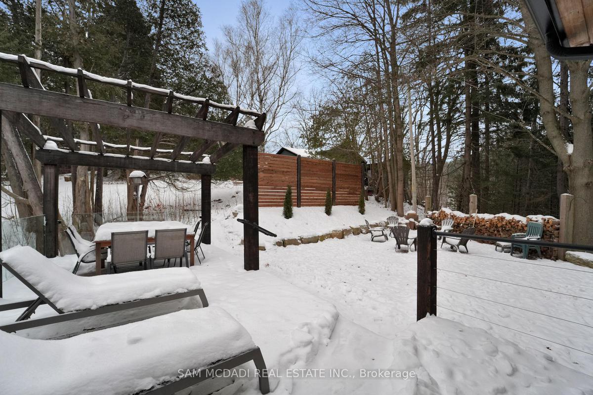 Welcome to 2084 Grand Blvd., a contemporary 3-bedroom, 4-bath summer home set within the exclusive, gated community of Cedar Springs, nestled along the Niagara Escarpment in the sought-after village of Kilbride, just 15 minutes from downtown Burlington. This private enclave of only 83 homes spans over 600 acres of protected nature and trails and offers a challenging golf course, pickleball and clay tennis courts, a sandy beach, and a vibrant community with year-round events, including a summer camp for children and grandchildren. Designed for recreation and entertaining, the home offers over 3,600 sq ft of living space across two levels with ceilings up to 12 ft, highlighted by post-and-beam Douglas fir timbers and sweeping views of the golf course and escarpment, with the first tee just steps from the front door. The main level features open-concept kitchen, dining, and living areas overlooking the first fairway, with a chef-inspired kitchen offering built-in appliances, walk-in pantry, and oversized centre island, while the dining area comfortably seats twelve. The serene primary suite enjoys golf course views, a dressing room, and spa-inspired ensuite, while two additional bedrooms share a Jack-and-Jill ensuite and walk-in closets. The walk-out lower level is an entertainer's retreat with theatre, golf simulator, games area, wet bar, gym, office or optional fourth bedroom, fourth bathroom, and an approx. 500 sq ft workshop/garage with glass walls. Outdoor living includes a covered front porch, rear timber/composite deck with glass railings, fire pit area, raised garden beds, and parking for up to 12 vehicles. Built with an ICF foundation, Shou Sugi Ban, protected Douglas fir framing, spray foam insulation, in-floor radiant heating, unlimited hot water, UV-treated spring water, and Ecoflo septic system, this is a rare offering delivering comfort, privacy, and resort-style living within the GTA.