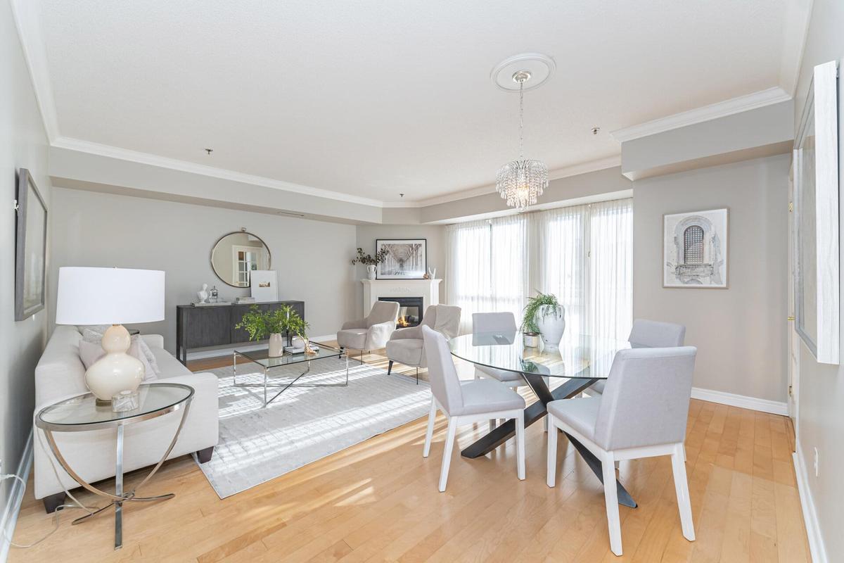 accommodate a king size bed and has a huge walk-in closet completed with closet organizers plus entrance to a large private balcony. The sun filled living and dining room combination is large and will accommodate any size furniture, corner fireplace and entrance to a huge balcony. For commuters, access to the Oakville GO station is a dream. A brisk 15 minute walk to downtown Oakville. Easy access to Whole Foods and other gourmet shopping is just down the road.