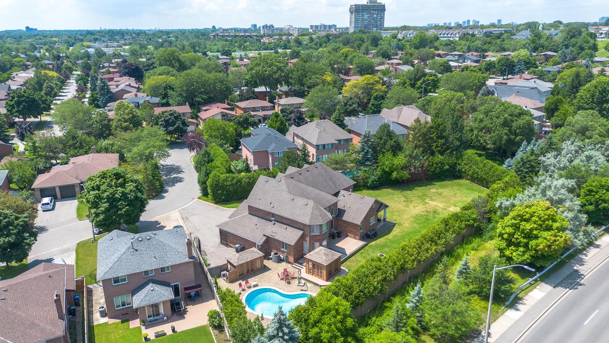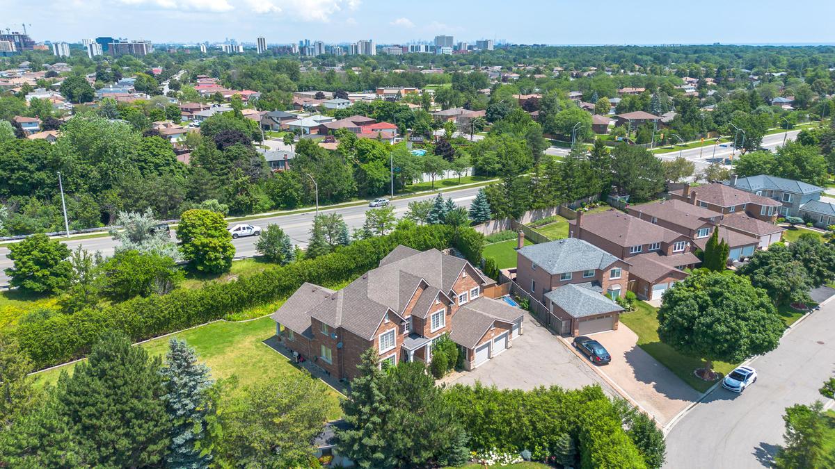 Immerse yourself in the highly desirable Erindale community, offering close proximity to Trillium Hospital, major shopping centres, trendy restaurants, and a convenient commute to downtown Toronto via the Queen Elizabeth Way and Highway 403. This spectacular home sits on an oversized, irregularly shaped lot and features over 6,000 square feet of total living space. The open concept interior showcases expansive living areas, soaring ceiling heights with pot lights and crown moulding, cherry hardwood floors, multiple fireplaces, and more. The bespoke chef's kitchen delivers a refined culinary experience, complete with a large centre island, granite countertops, built-in appliances, and an eat-in breakfast area. The breathtaking family room features open-to-above ceilings, built-in shelving, a gas fireplace, and expansive windows that flood the space with natural light. The main level primary bedroom is thoughtfully designed with a gas fireplace, an elegant 5-piece ensuite, a large walk-in closet, and direct access to a private office. The upper level offers three additional bedrooms with ensuite or semi-ensuite bathrooms, along with a dedicated study nook featuring built-in desks and cabinetry. An exceptional investment opportunity awaits with a self-contained basement apartment that includes a kitchen, two bedrooms, two bathrooms, a large recreation area, a movie theatre, and a gym.