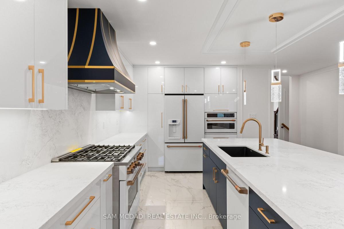Step inside 5180 Littlebend Dr, a thoughtfully upgraded 4+1 bedroom, 5 bathroom home in sought after Churchill Meadows, offering approximately $450K in premium enhancements. The impressive foyer welcomes you with high ceilings & sleek tile flooring, seamlessly flowing into a bright open concept main floor adorned with pot lights & chevron hardwood flooring throughout for a classic Parisian touch. The kitchen is a true showpiece, featuring panel-ready top of the line appliances, quartz countertops & backsplash, crown moulding, a large centre island with ample storage, & gold accents throughout, all set on luxurious tile flooring. Overlooking the kitchen are the dining & living areas, highlighted by refined wainscoting & a cozy fireplace that sets the tone for a warm, inviting setting. A walkout from the main living space leads to the backyard deck, perfect for seamless indoor / outdoor living. A main floor laundry room & 2pc powder room complete this level. Ascend the curved staircase to the second level, where the primary suite awaits, complete with a custom walk-in closet & a spa inspired 5pc ensuite featuring a soaker tub, walk-in shower, his & hers sinks, & elegant finishes throughout. Three additional well sized bedrooms complete this level, each with generous closet space, two sharing a semi-ensuite, along with a stylish 3pc main bathroom. The finished lower level adds exceptional versatility, featuring a fifth bedroom, a full kitchen with stainless steel appliances, quartz countertops, & ample cabinetry, as well as a spacious recreation area, ideal for an in-law suite or added entertainment space. Step outside to a spacious, fully fenced backyard, offering plenty of room for kids, pets, & outdoor gatherings. Centrally located near restaurants, schools, parks, golf & country clubs, and more, this elegant residence is ready to welcome you home!