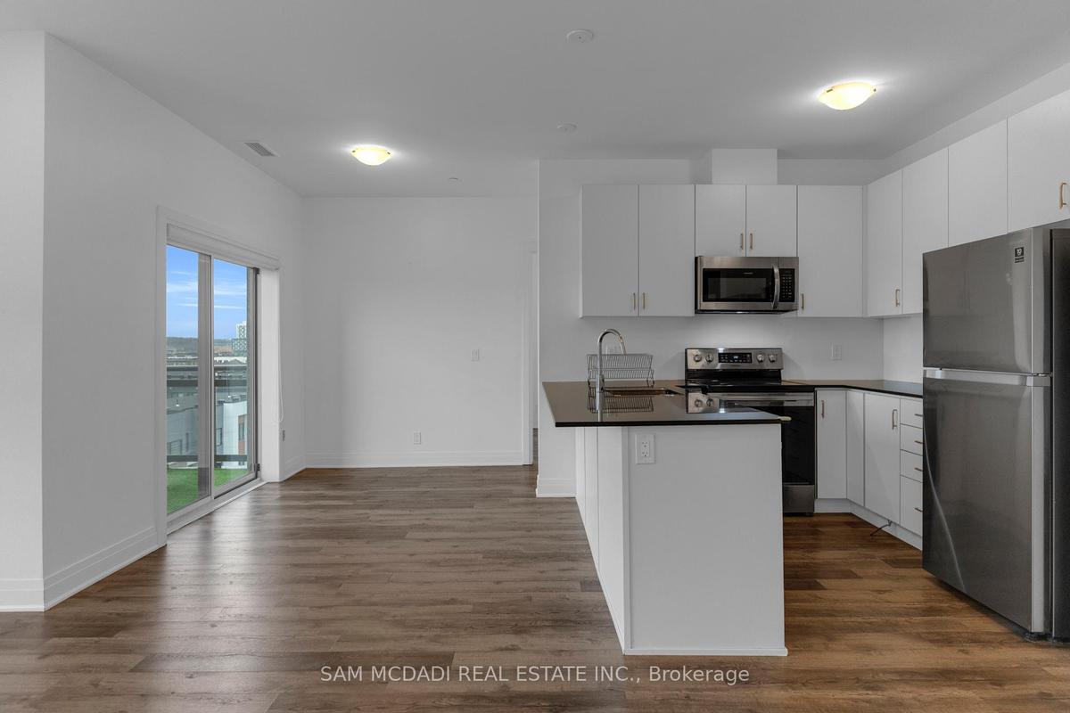 Step into refined condo living in one of Oakville's premier Mattamy built communities, conveniently located near shopping centres, parks, recreational facilities, schools, and major highways. Spanning approximately 700 sq. ft., this fifth floor residence showcases a beautifully designed 2 bedroom, 2 bathroom open concept layout, highlighted by large windows throughout that allow natural light to fill the space. The modern kitchen is equipped with stainless steel appliances, ample cabinetry, and a convenient breakfast bar, all overlooking the dining and living areas that extend to a private balcony, an ideal spot to enjoy morning coffee or unwind in the evening. A spacious primary bedroom provides the perfect space for relaxation with a walk-in closet and a private 3pc ensuite complete with an upgraded glass enclosure and wall tiles. The second bedroom features a closet and a large window, offering a versatile space that can easily serve as a home office or guest room. Additional highlights include a 4pc main bathroom, in-unit laundry, one underground parking space, and a private locker for extra storage. Residents enjoy access to building amenities including a gym, party room, visitor parking, and more. Live, relax, and entertain in a space that blends comfort, style, and convenience in the heart of Oakville.