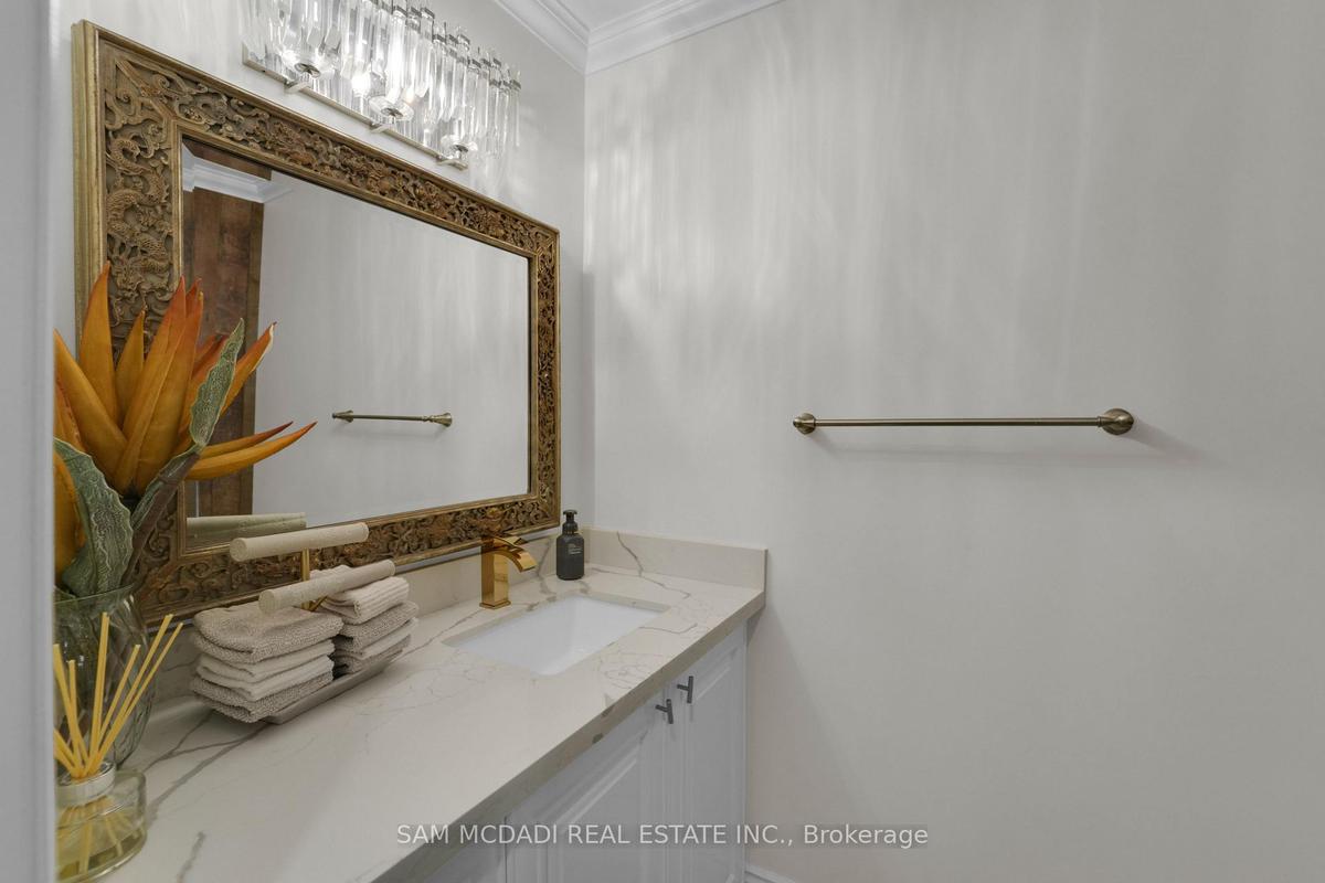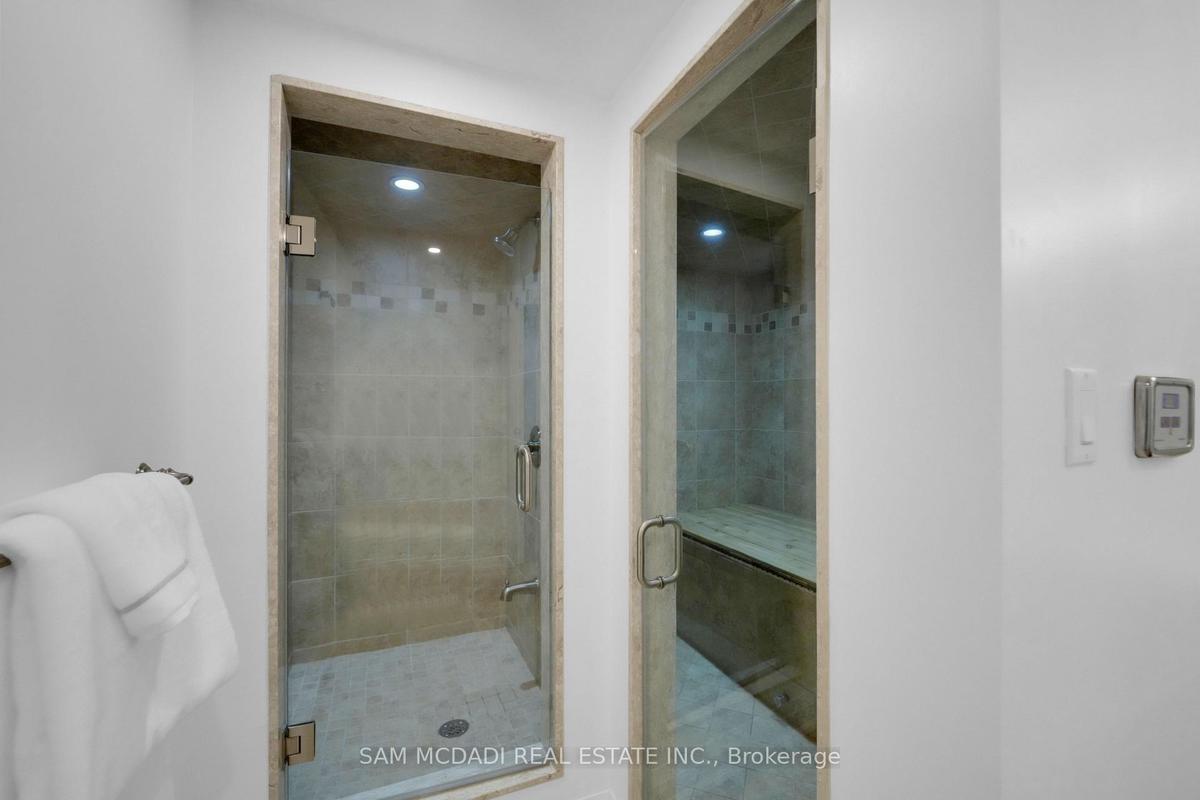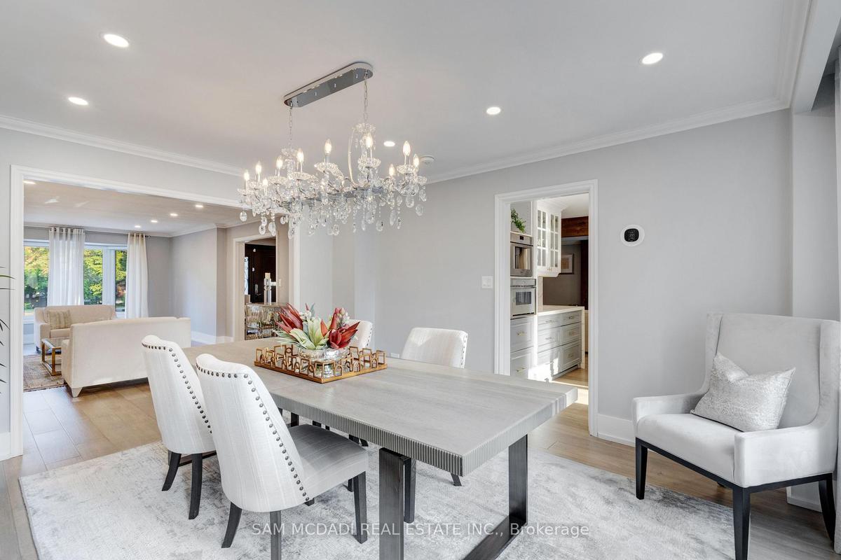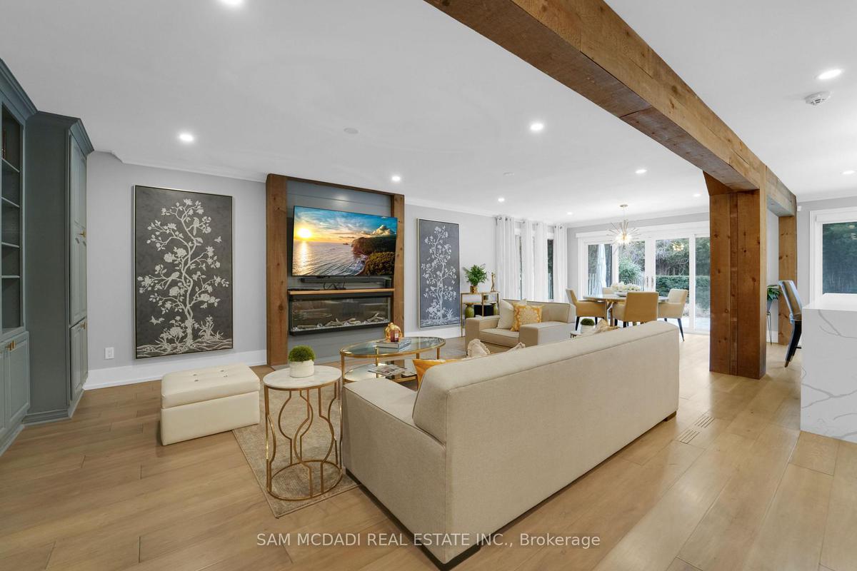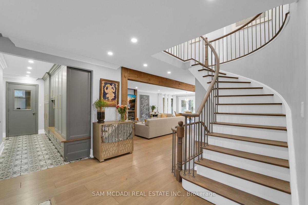 Welcome to 807 Indian Road, a beautifully appointed residence in the heart of prestigious Lorne Park. Set on an impressive 64 x 244 ft lot, this elegant home offers exceptional privacy, outstanding curb appeal, and a tranquil setting on one of South Mississauga's most desirable streets. A hydraulic iron gate, professionally landscaped grounds, and an extended stone interlock driveway create a striking first impression, with parking for up to 8 vehicles plus a double garage featuring built-in storage and EV charging. Offering over 4600 sqft of total living space, this 4+1 bedroom, 4-bathroom home was thoughtfully renovated in 2021 to blend modern luxury with timeless comfort. The main level is bright and inviting, featuring oversized windows, light oak wide-plank engineered hardwood flooring, pot lights, and custom built-in storage throughout. The gourmet kitchen is complete with quartz countertops and backsplash, premium Thermador stainless steel appliances, and ample storage. The family room is warm and inviting with custom wood paneling, built-in shelving, and a Napoleon electric fireplace. A graceful round hardwood staircase leads to the upper level, where the spacious primary retreat offers a walk-in closet and spa-inspired ensuite with double vanity and glass-enclosed rainfall shower. A junior suite includes a brand-new 3-piece ensuite with rainfall shower and brass fixtures, alongside two additional bedrooms and a 4-piece bath. The finished lower level features an additional bedroom and bathroom, wet bar, sauna, home theatre setup, rec room with fireplace, and a laundry room with built-in cabinetry. Outdoors, the exceptionally deep backyard is a private oasis complete with full outdoor kitchen, interlocked patio, mature trees, and lush gardens. Perfectly situated near top-rated schools including Mentor College, Lake Ontario, Port Credit, golf clubs, and the QEW, this exceptional home offers refined living in one of Mississauga's most sought-after communities.