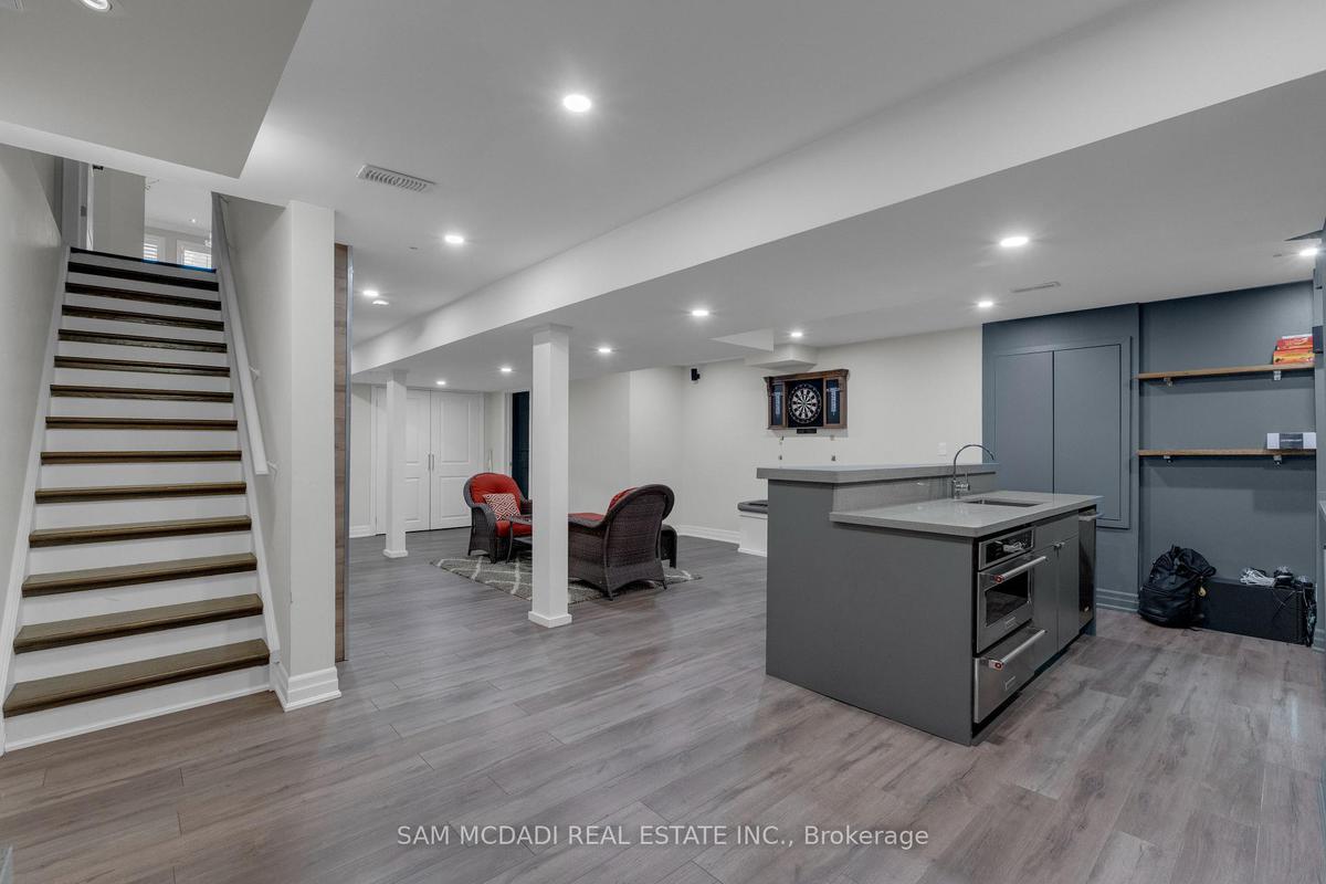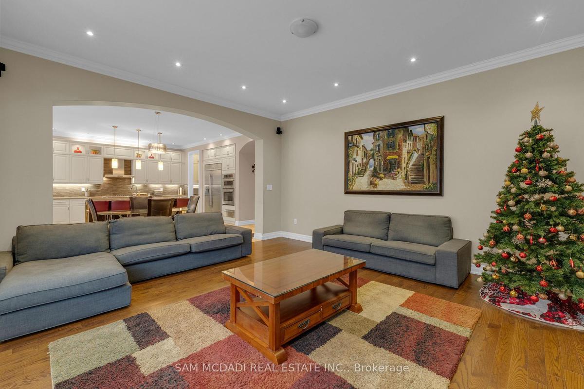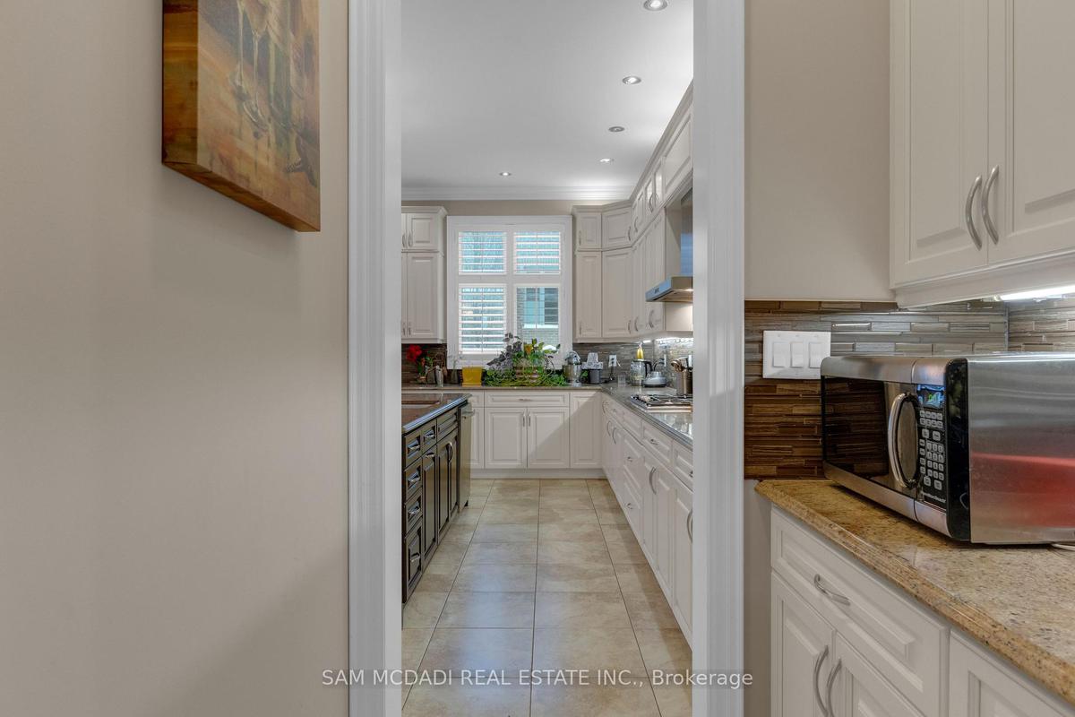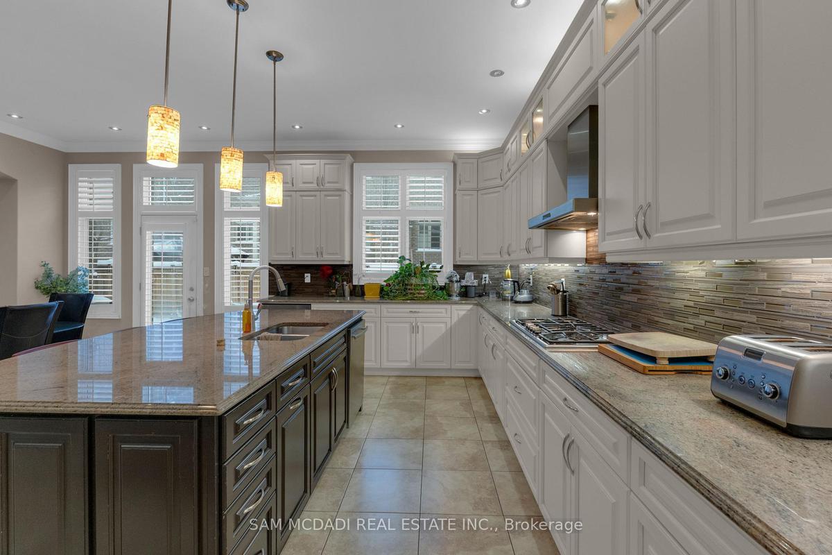 Welcome to this beautifully appointed 4 bedroom, 5 bathroom residence, nestled in one of Oakville's most sought after neighbourhoods. Offering approximately 3,869 sq. ft. of refined above grade living space & fully completed basement, this home is thoughtfully designed & enhanced by elegant finishes throughout. At the heart of the home is a chef inspired kitchen w/JennAir & Thermador top tier built-in appliances, granite countertops, a centre island w/breakfast bar, & a convenient servery, all overlooking the bright breakfast area that walks out to a private backyard oasis, an ideal space for morning coffee or simply enjoying quiet moments surrounded by greenery. The inviting living room, adorned by a warm fireplace, seamlessly connects to the kitchen & breakfast area, creating an open, welcoming space for family gatherings. A spacious formal dining room provides the perfect setting for family dinners & entertaining guests, while the main floor office provides a quiet retreat, complete w/French doors, pot lights, & charming bay windows. Ascend on the curved staircase to the second level, where the primary suite awaits, featuring a his & hers closets & a 5pc ensuite w/a walk-in shower, soaker tub, his & hers sinks, & thoughtful finishes throughout. Three additional generously sized bedrooms are located on this level, each includes ample closet space & semi-ensuite access, while a second floor family room adds versatile living space ideal for relaxation. The fully finished basement expands the home's living potential, featuring a recreation area w/fireplace, a wet bar, & a comfortable living space w/built-in speakers, perfect for movie nights or hosting friends & family. Step outside & enjoy a fully private backyard, offering plenty of space for outdoor activities, gardening, or creating your own personal oasis. Located near Snake & Latter Golf & Country Club, parks, schools, major grocery stores & more. this home is ready for you to move in & make it your own.