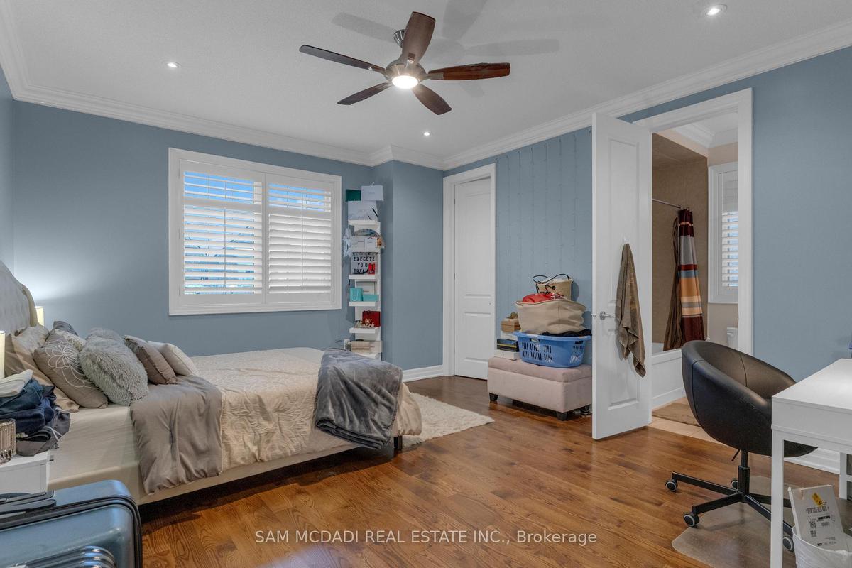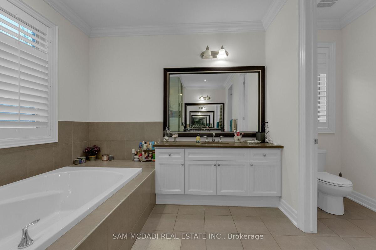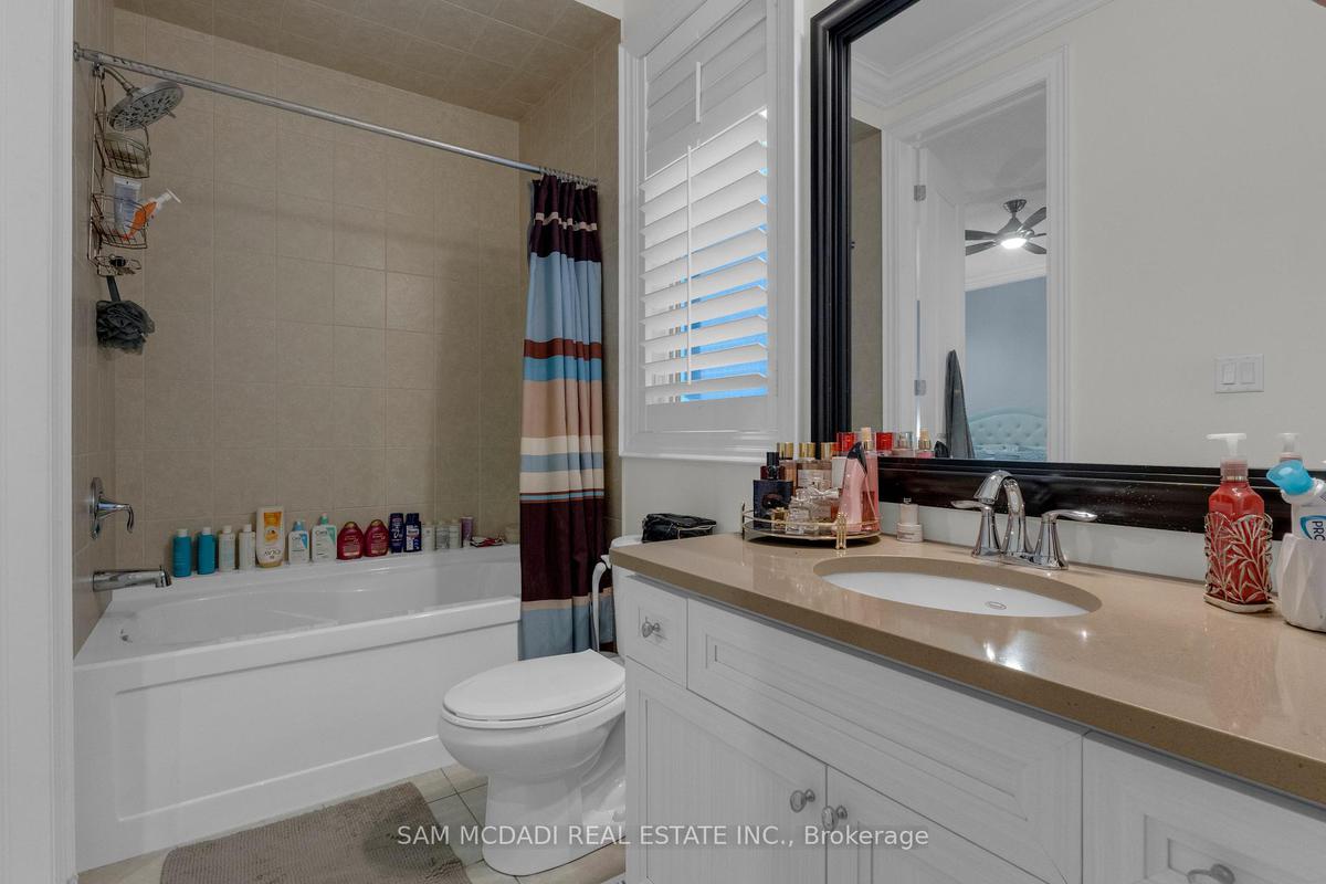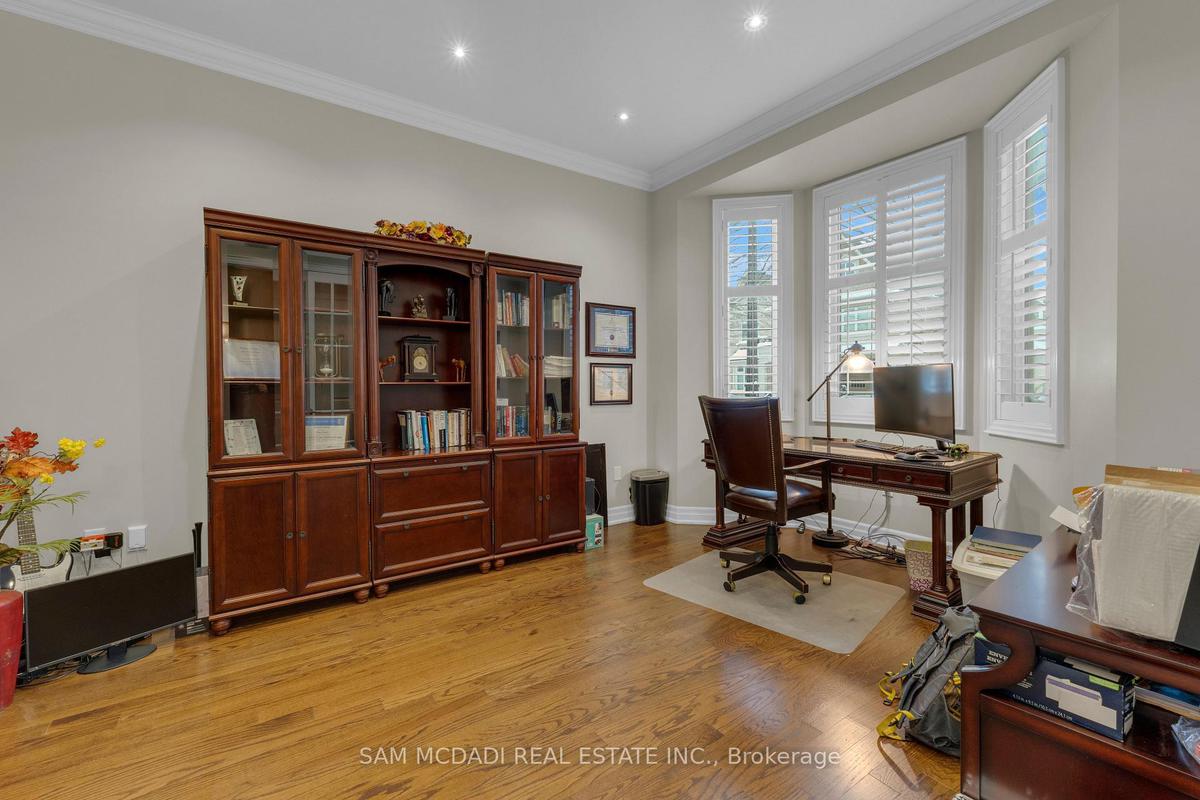Welcome to this beautifully appointed 4 bedroom, 5 bathroom residence, nestled in one of Oakville's most sought after neighbourhoods. Offering approximately 3,869 sq. ft. of refined above grade living space & fully completed basement, this home is thoughtfully designed & enhanced by elegant finishes throughout. At the heart of the home is a chef inspired kitchen w/JennAir & Thermador top tier built-in appliances, granite countertops, a centre island w/breakfast bar, & a convenient servery, all overlooking the bright breakfast area that walks out to a private backyard oasis, an ideal space for morning coffee or simply enjoying quiet moments surrounded by greenery. The inviting living room, adorned by a warm fireplace, seamlessly connects to the kitchen & breakfast area, creating an open, welcoming space for family gatherings. A spacious formal dining room provides the perfect setting for family dinners & entertaining guests, while the main floor office provides a quiet retreat, complete w/French doors, pot lights, & charming bay windows. Ascend on the curved staircase to the second level, where the primary suite awaits, featuring a his & hers closets & a 5pc ensuite w/a walk-in shower, soaker tub, his & hers sinks, & thoughtful finishes throughout. Three additional generously sized bedrooms are located on this level, each includes ample closet space & semi-ensuite access, while a second floor family room adds versatile living space ideal for relaxation. The fully finished basement expands the home's living potential, featuring a recreation area w/fireplace, a wet bar, & a comfortable living space w/built-in speakers, perfect for movie nights or hosting friends & family. Step outside & enjoy a fully private backyard, offering plenty of space for outdoor activities, gardening, or creating your own personal oasis. Located near Snake & Latter Golf & Country Club, parks, schools, major grocery stores & more. this home is ready for you to move in & make it your own.