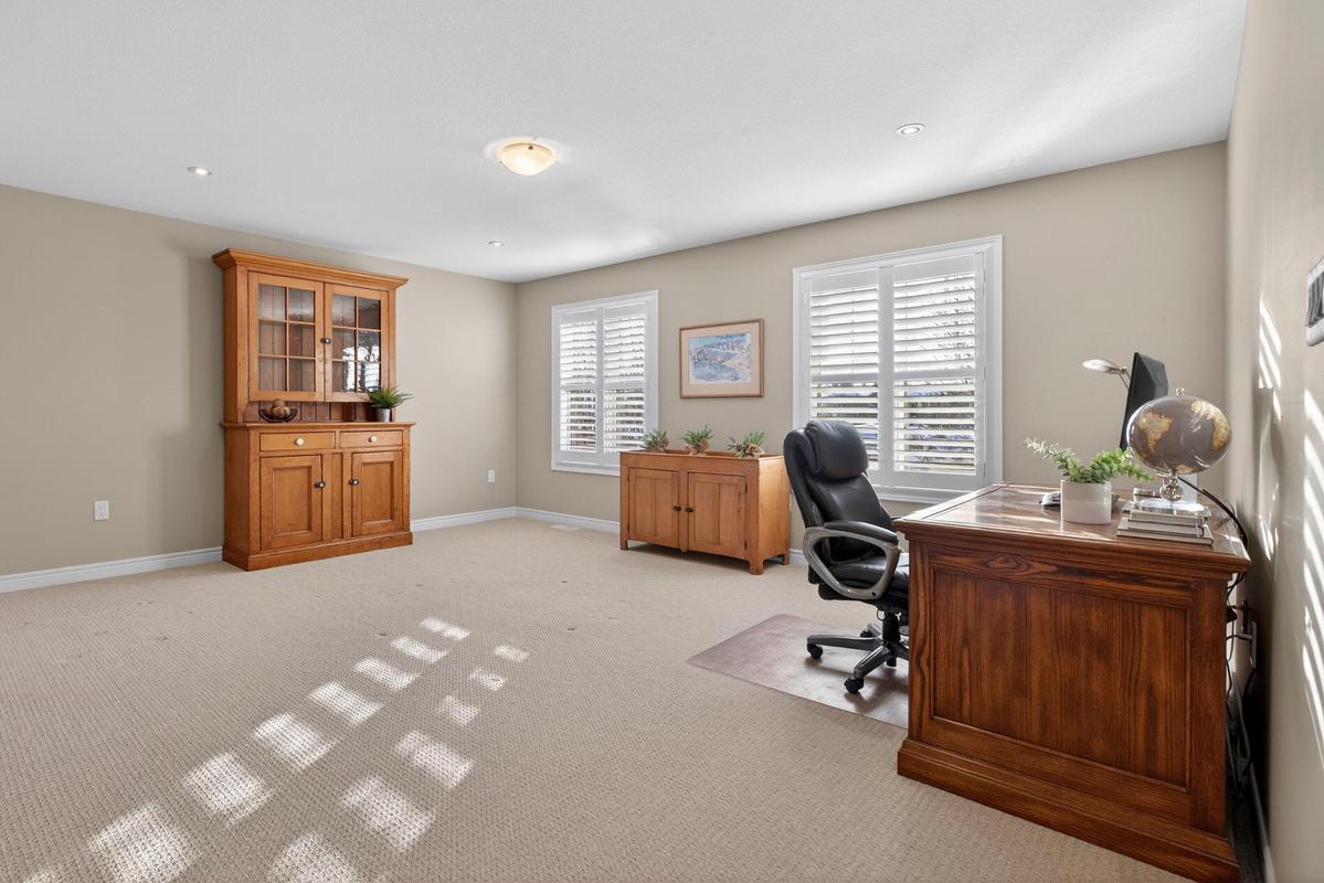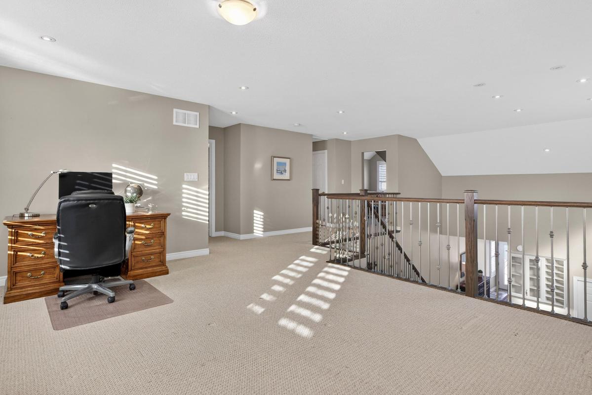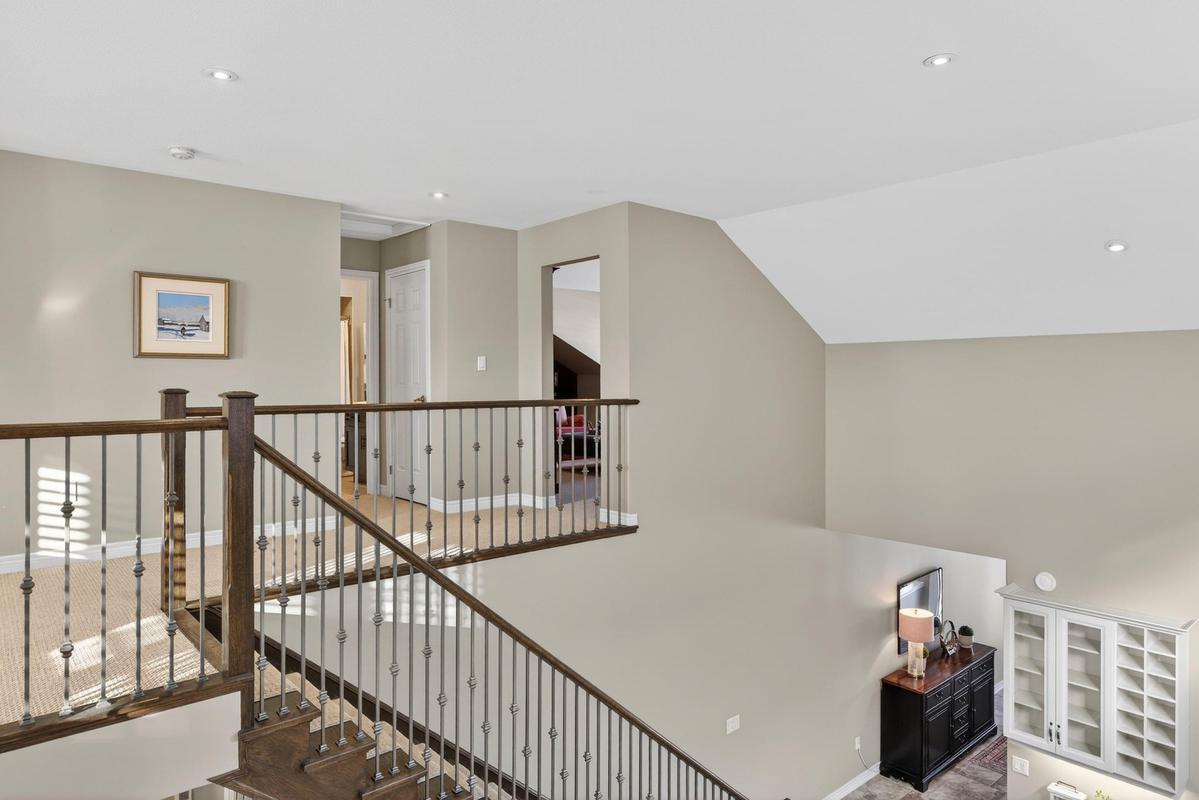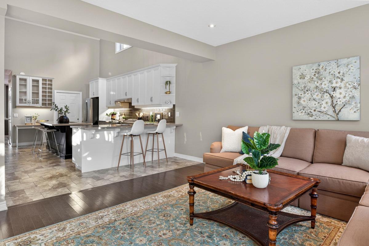 Welcome to 27 Black Walnut Crescent, nestled in one of Ancaster's most sought-after detached condo lifestyle communities. This exclusive private-road enclave offers the perfect blend of privacy, prestige, and low-maintenance living, with exterior upkeep professionally managed so you can focus on enjoying your home and surroundings. Ideally located, you're just minutes to major highways, shopping, dining, and everyday conveniences. Inside, the home impresses with a bright, open-concept design highlighted by vaulted ceilings and a dramatic second-floor loft overlooking the main living space, creating an airy, sophisticated atmosphere. Large windows throughout flood the home with natural light, enhancing the sense of space and warmth. The custom chef's kitchen is both stylish and functional, featuring quartz countertops, a walk-in pantry, abundant prep space, and a seamless flow between counters and centre island, ideal for entertaining or everyday living. The adjoining family room offers built-ins, a gas fireplace, and a walk-out to a private patio. The upgraded staircase with modern metal pickets leads to a versatile second floor with theatre room with built-in shelving, perfect for movie nights, a home office, additional bedrooms or lounge space. Designed with convenience in mind, the home offers up to four spacious bedrooms, including a main-level primary suite complete with a walk-in closet and a generous 5-piece ensuite bath. This is an ideal layout for those seeking the ease of main floor living. The unfinished basement offers outstanding potential, excellent for storage today and ready for your custom vision in the future. This is a rare opportunity to enjoy space, style, and turnkey convenience in a prestigious, maintenance-supported Ancaster community.
