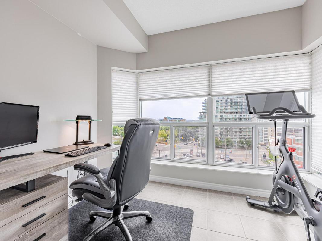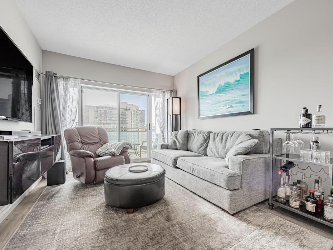 Welcome to Queen's Harbour Condos, where style meets convenience, all accented by a mesmerizing lake view. This spacious 1-bedroom, 1-bathroom unit offers a versatile 645 sq. ft. layout, including a solarium large enough for a home office. Soaring 9-foot ceilings and large windows flood the space with natural light, creating an open and inviting atmosphere that perfectly frames the stunning lake vistas. This unit also includes the convenience of a dedicated parking space, a storage locker, and a private balcony. Your maintenance fees conveniently cover most utilities. As a resident, you'll enjoy access to top-notch amenities, including a fully-equipped gym, recreation room, and sauna. Perfectly situated, this condo is steps from Toronto's vibrant waterfront, offering easy access to scenic bike paths, fantastic restaurants, and the Toronto Islands. Commuting is a breeze with the airport, TTC, and major highways all nearby. Plus, with a large Loblaws just moments away, daily errands are effortless. Experience a lifestyle of unparalleled convenience and connectivity in the heart of one of Toronto's most sought-after neighborhoods.