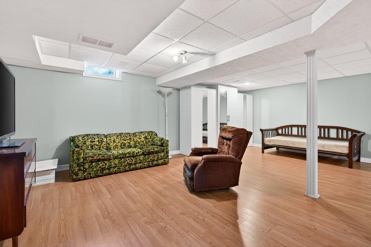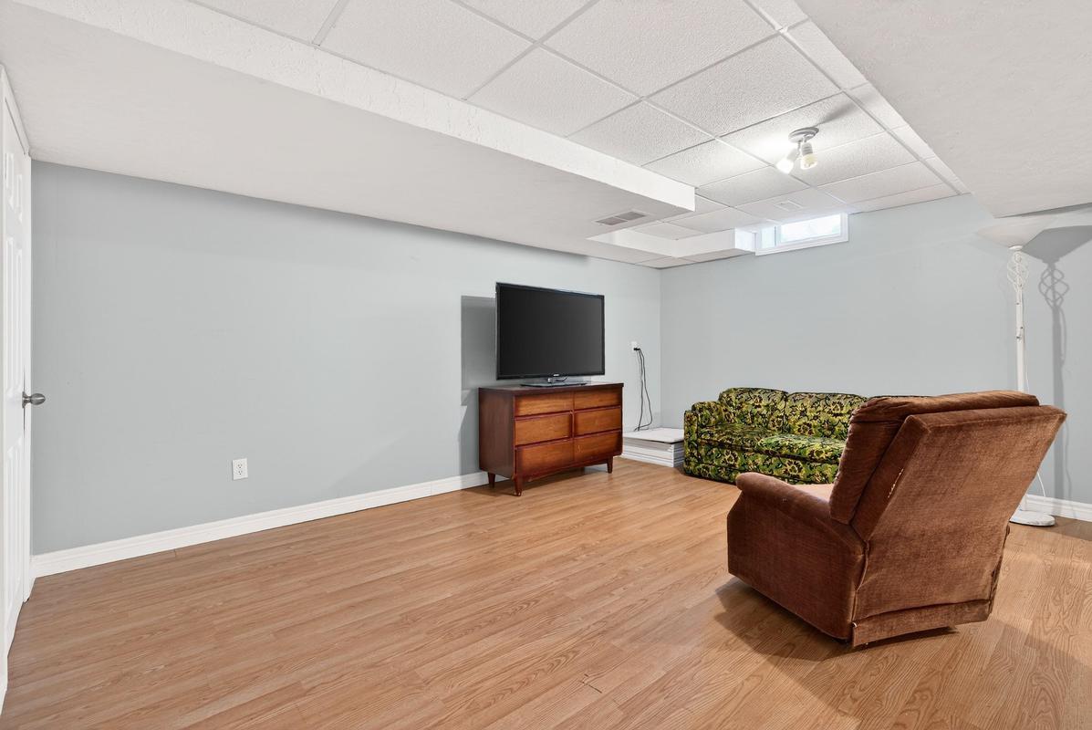 Discover effortless living in this well-cared-for 2-bedroom, 2-bath bungalow located in the desirable Garth Trails adult lifestyle community. Offering approximately 1,100 sq. ft. of functional and inviting space, this home features an attractive brick and stone exterior, a single-car garage with interior access, and a private driveway. Inside, the layout is both practical and welcoming. A front bedroom and spacious foyer with linen storage set the tone, while the kitchen offers generous cabinetry, a breakfast peninsula, and a seamless flow into the combined living and dining area-ideal for everyday living and entertaining. patio doors open to a quiet rear patio with no unit directly behind, providing added privacy. The primary bedroom includes his and hers closets and a 4-piece ensuite privilege. Main-floor laundry enhances the ease of single-level living. The finished lower level expands your living space with a large recreation area, a 3-piece bathroom, and ample storage. Neutral finishes throughout make the home move-in ready and easy to personalize. This is not your typical rental townhome. Residents of Garth Trails enjoy access to an exceptional clubhouse and resort-style amenities, including an indoor pool, sauna, whirlpool, fitness centre, tennis and pickleball courts, bocce, shuffleboard, craft and games rooms, a putting green, and a grand ballroom hosting regular social events. Surrounded by private parkland and tranquil pond views, this community offers a relaxed, low-maintenance lifestyle in a truly special setting.