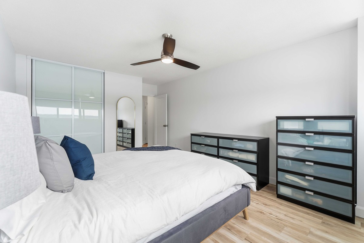 Whether you're entering the Niagara housing market, searching for a low-maintenance investment, or ready to simplify your lifestyle, this beautifully updated condominium is an opportunity you won't want to miss. Offering approximately 720 sq. ft. of bright, thoughtfully designed living space, this spacious one-bedroom, one-bathroom suite is located in the impeccably maintained Glencourt Place building, just minutes from schools, shopping, places of worship, highways, public transit, and Niagara's vibrant downtown core. Move-in ready and tastefully refreshed, the entire unit has been freshly painted in Chantilly Lace, including the ceilings, creating a clean, modern aesthetic throughout. In 2025, brand new interior and closet doors were installed, complemented by new baseboards and professionally installed commercial-grade vinyl flooring. The kitchen was fully renovated in 2023 with stainless steel appliances (only a few years old), while the bathroom was completely redesigned in 2025, offering stylish, contemporary finishes. The bedroom features a custom closet organization system (2025), along with blackout rolling shades installed in 2024. Matching rolling shades were also added to the main living area in 2024 for a cohesive look and enhanced comfort. Additional highlights include exclusive use of a lower-level storage locker-perfect for seasonal items-and access to the building's spacious, meticulously maintained laundry facilities. Parking is available at a low monthly cost: $20 for outdoor parking and $25 for underground parking (the unit is currently renting two underground spots). Residents also enjoy access to a refreshing outdoor in-ground pool, ideal for relaxing on warm summer days. An exceptional blend of value, location, and turnkey convenience, this is easy condo living at its best.