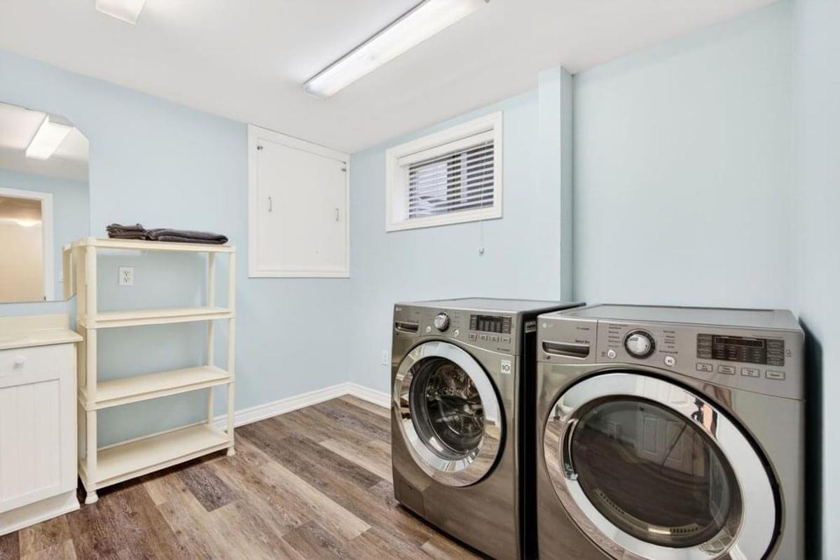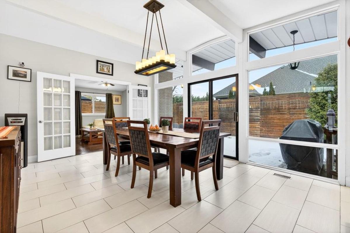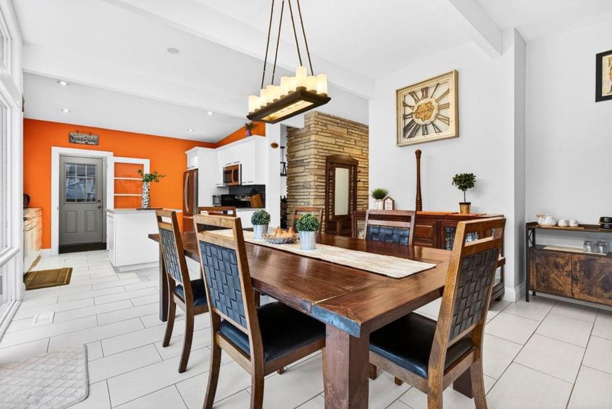 So much to love in this thoughtfully expanded home that beautifully blends timeless character with modern luxury. The original residence showcases cathedral beamed ceilings, rich hardwood floors, a welcoming main-floor family room, floor-to-ceiling windows that flood the space with natural light, and a stunning stone wood-burning fireplace that anchors the home with warmth and charm. The impressive addition creates a true primary retreat, featuring soaring 12-foot ceilings, transom windows, hardwood flooring, a spa-inspired 5-piece ensuite, and a walkout to a private front lounge deck-perfect for morning coffee or evening unwinding. The fully finished lower level offers exceptional flexibility, ideal for a teen retreat or in-law suite, with an additional bedroom, oversized recreation room with gas fireplace, second laundry, and ample storage. Outside, the home sits nicely set back from the road, offering parking for up to eight vehicles, a convenient drive-thru garage, and a private backyard retreat complete with a large deck, privacy fencing, above-ground pool, and storage shed.