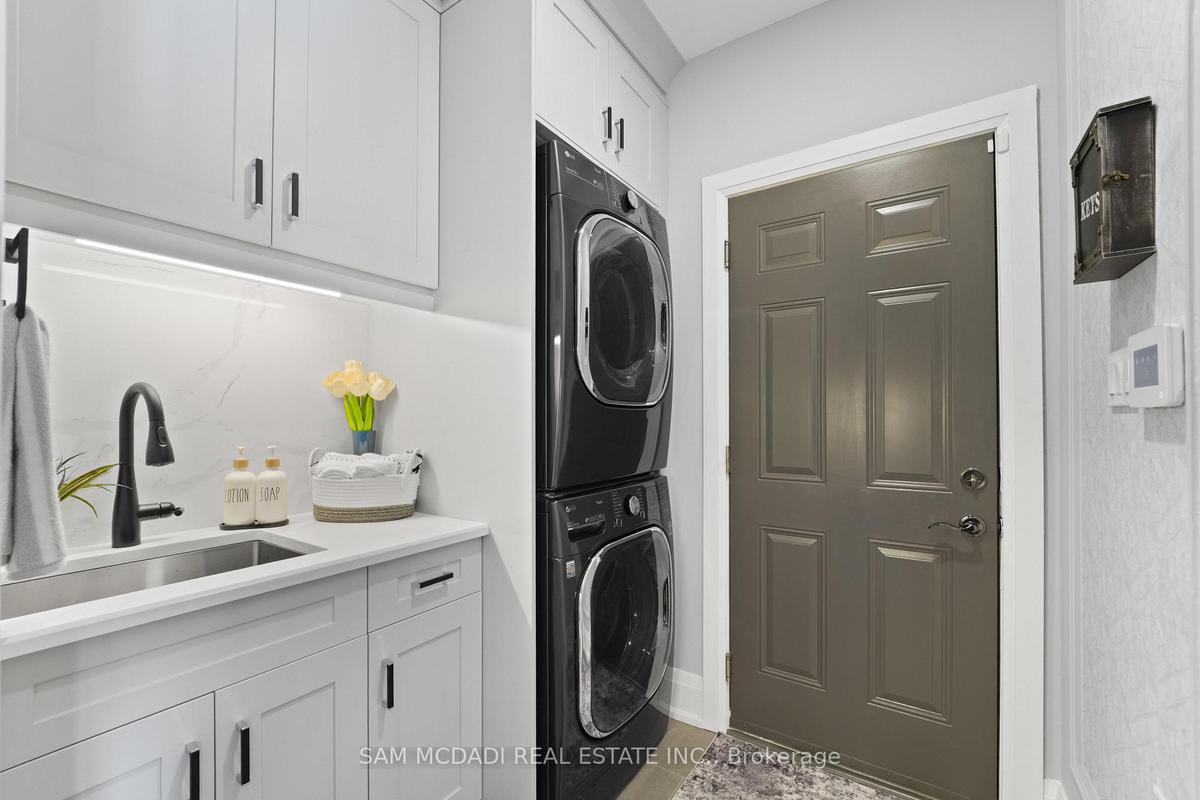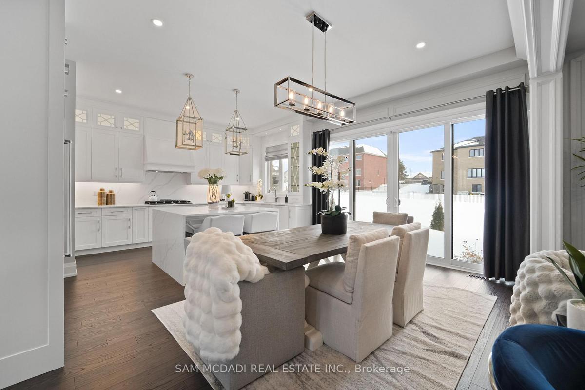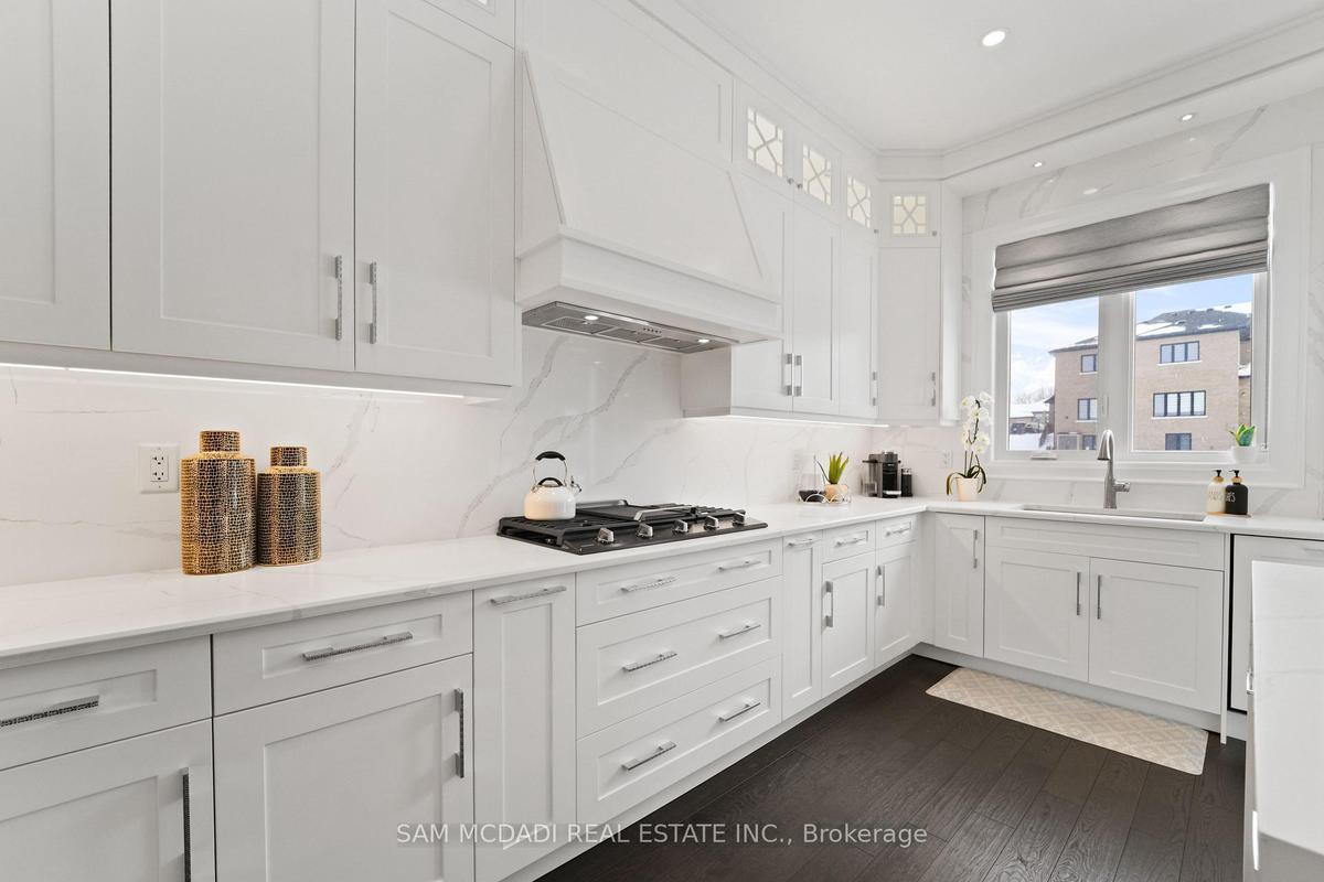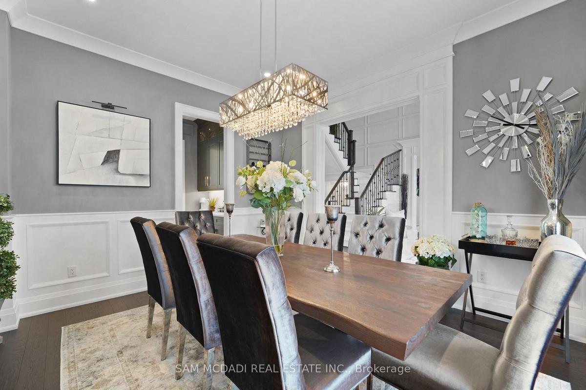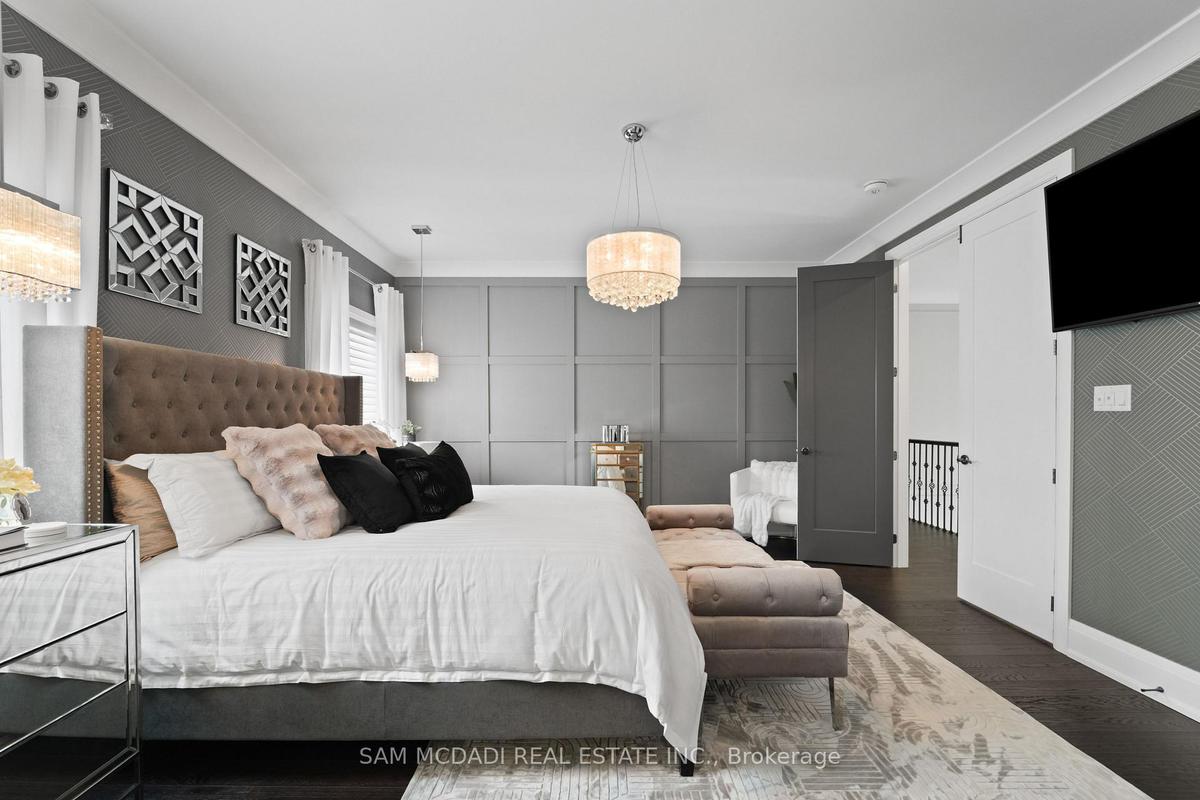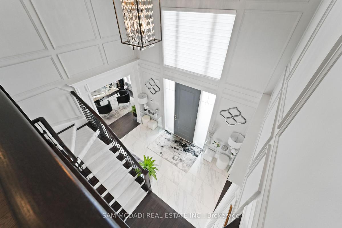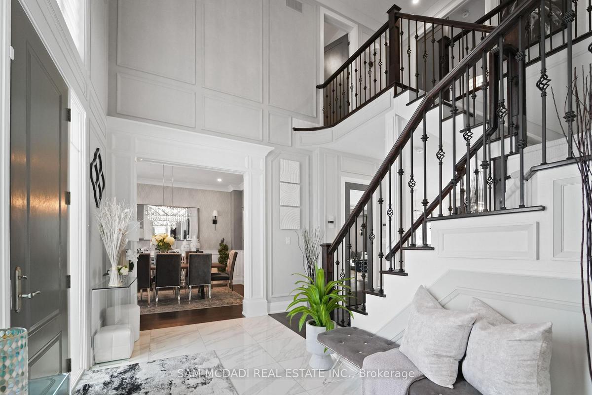 A very rare FURNISHED, truly turn key home. Step into exceptional craftsmanship and timeless design in this beautifully styled residence on nearly a half acre offered !!fully furnished!! - move-in ready with the stunning existing furniture. Approximately 4,500 sq ft of impeccably finished living space showcases 10' main-floor ceilings, 8' interior doors, and extraordinary millwork: generous trim, intricate moldings and custom woodworking throughout that reflect attention to detail unlike any home you've seen. Entertain and live luxuriously on the main level where a tucked-away office provides quiet work space and a chef's kitchen anchors the home. The kitchen features custom cabinetry with bespoke hardware, built-in appliances, an impressive waterfall quartz center island and quartz backsplash. It opens to a great room with built-in shelving, an intricate coffered ceiling and a showpiece fireplace and mantel. An accessory butler servery with wine fridge and sink makes hosting effortless. A very stylish separate dining room offers crown molding, chic wallpaper and wainscoting. Upstairs offers four bedrooms including the primary suite with a spa-like 5-piece ensuite and generous walk-in closet, two additional full bathrooms, and a striking bedroom with a 12' vaulted ceiling - bright, airy and refined living spaces designed for comfort and style. The lower level, with separate entrance, is ideal for guests or an in-law/nanny suite: kitchenette, bedroom, full bathroom and a large rec room anchored by a beautiful fireplace. Outside, the expansive nearly half-acre lot has inground sprinklers, a gorgeous covered porch with lighting, hot tub, stone facade wall with a fireplace and mount for a TV perfect for entertaining. Offered with the curated furniture and finishes that make this house a turnkey show-home.
