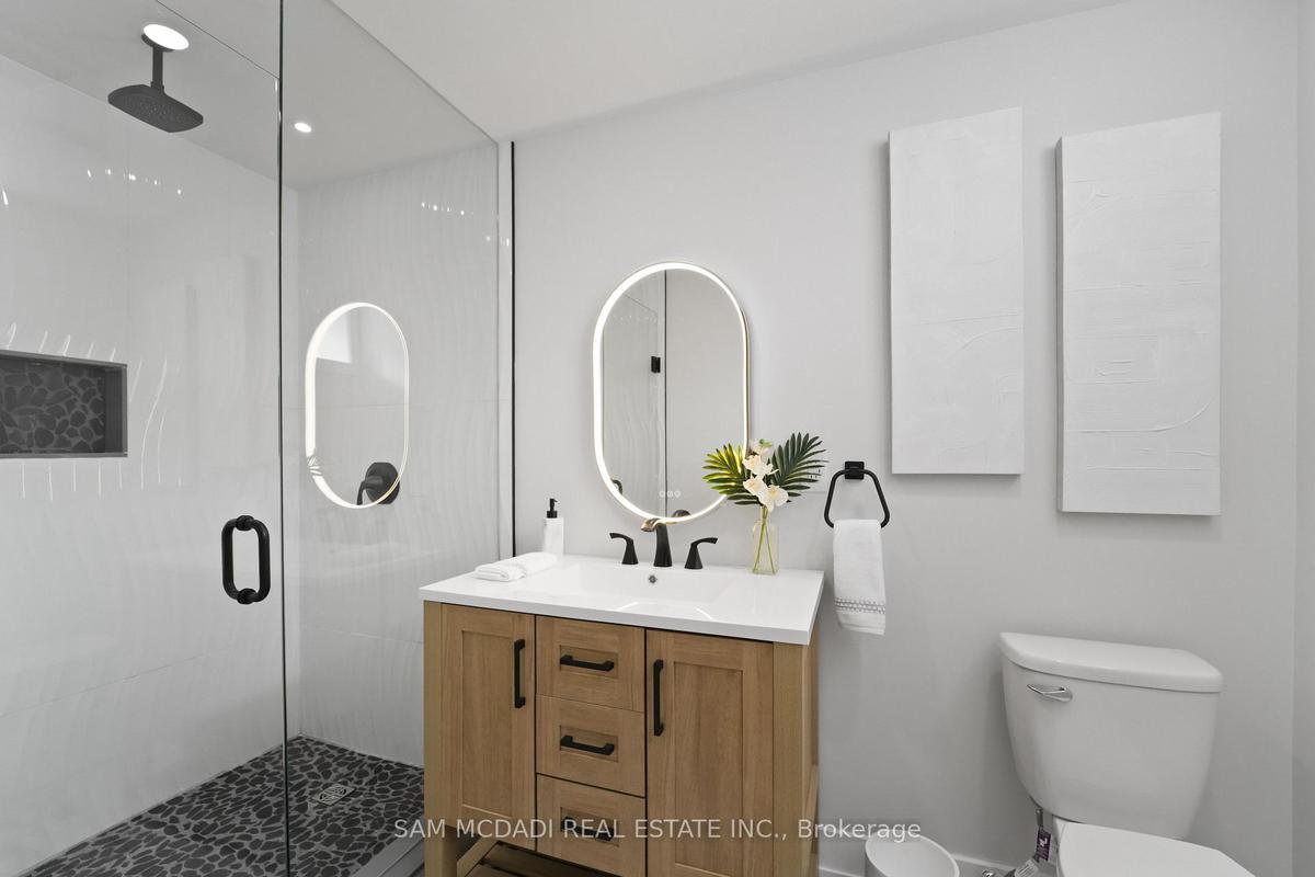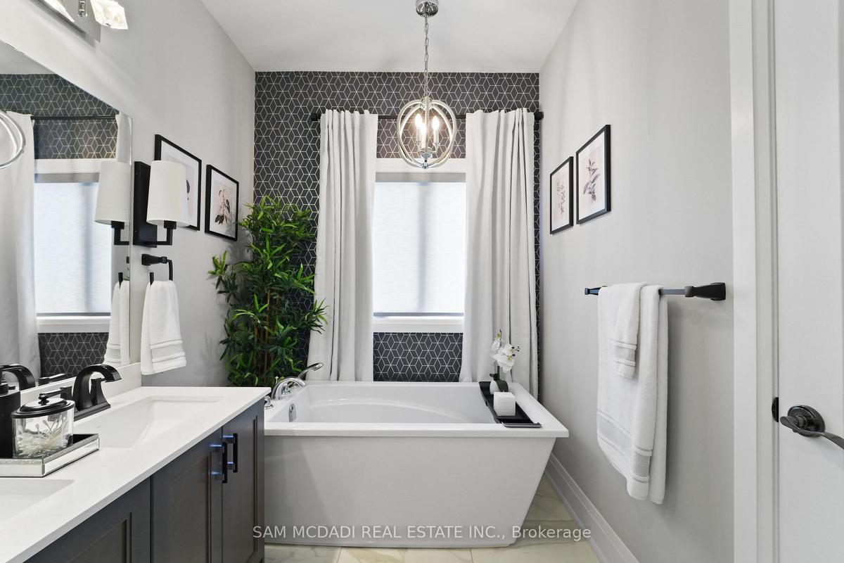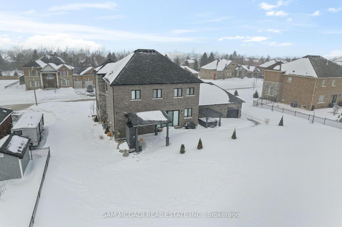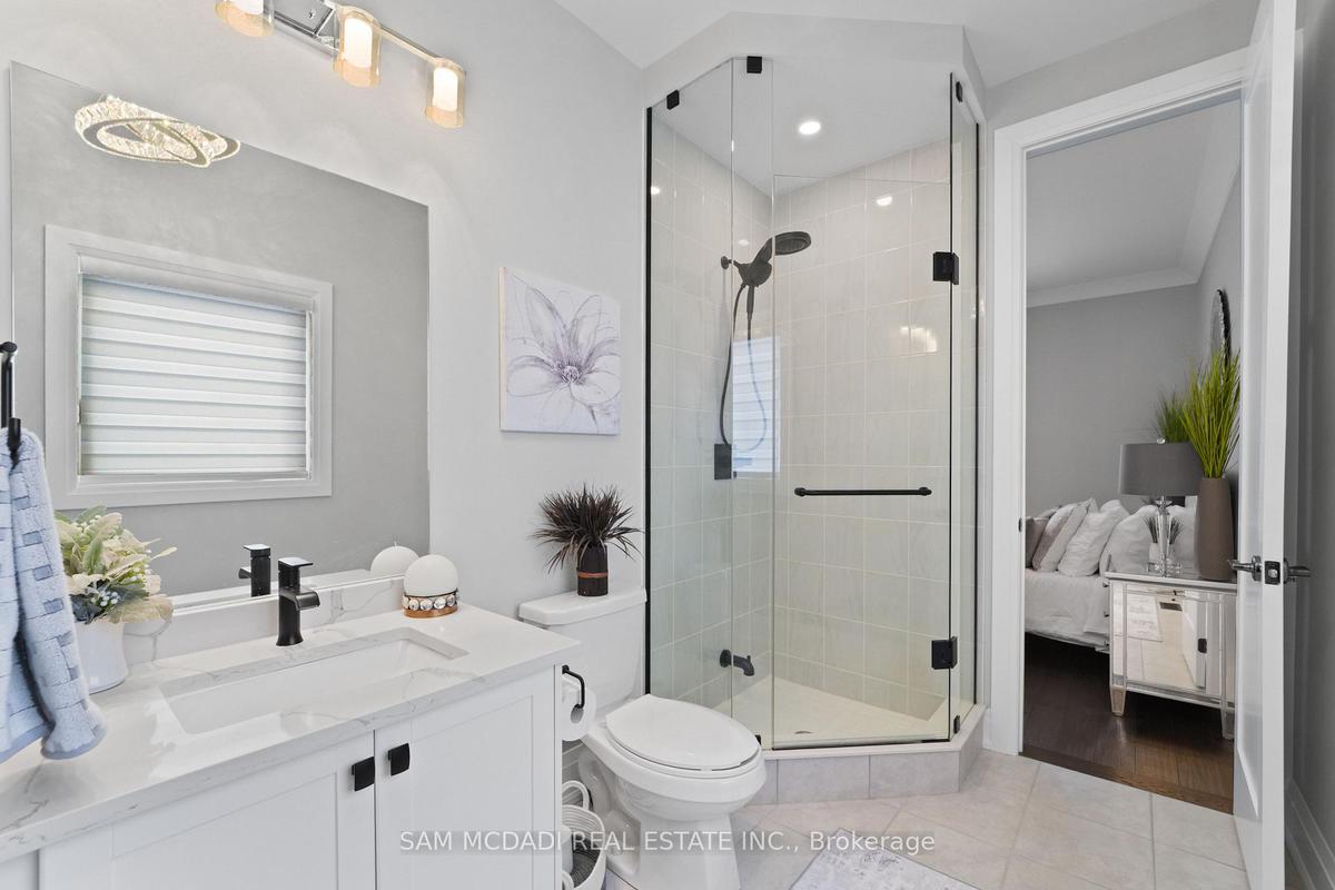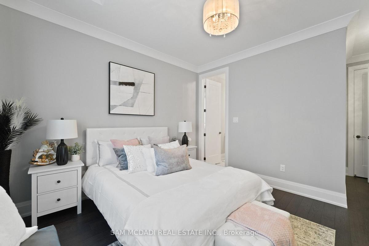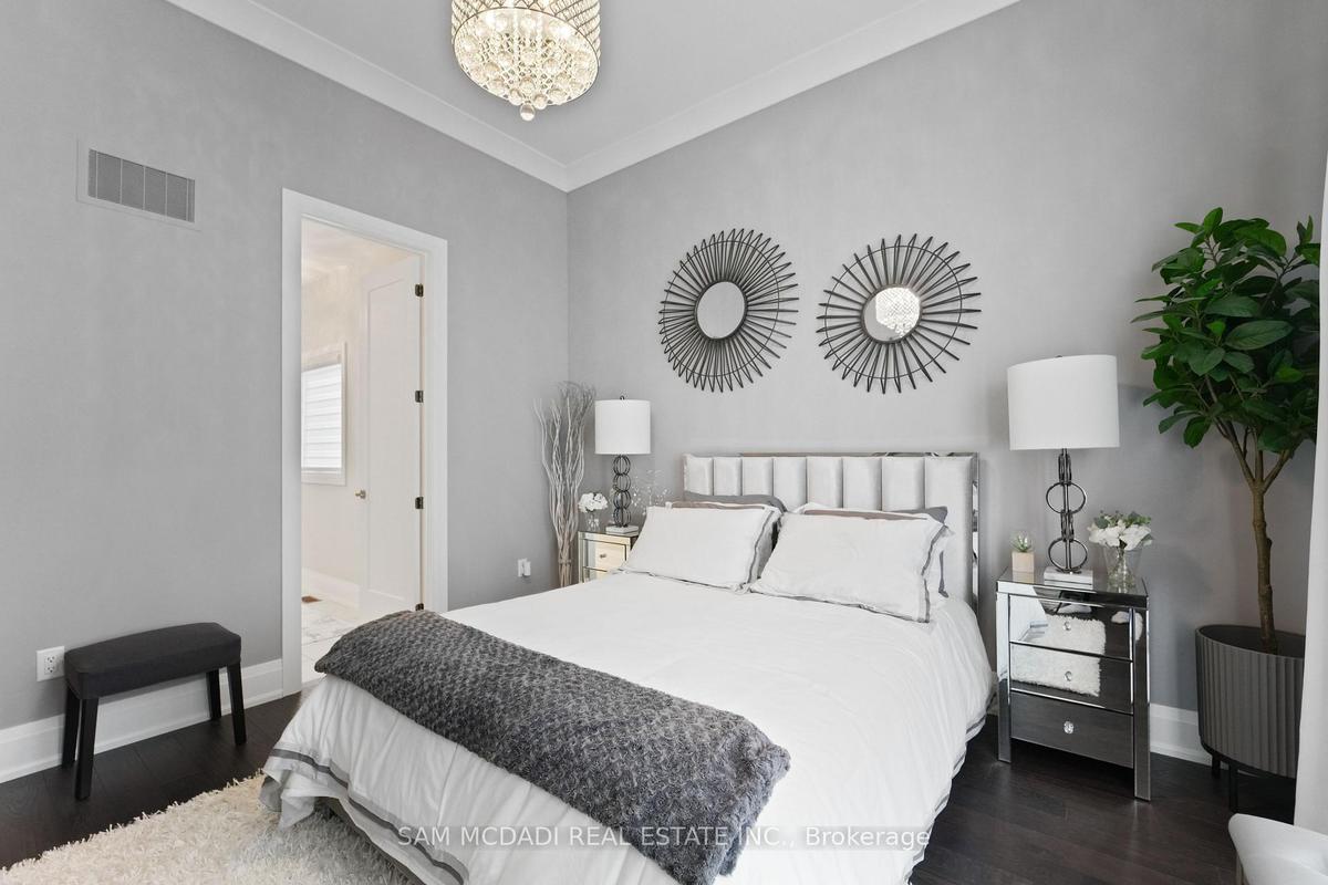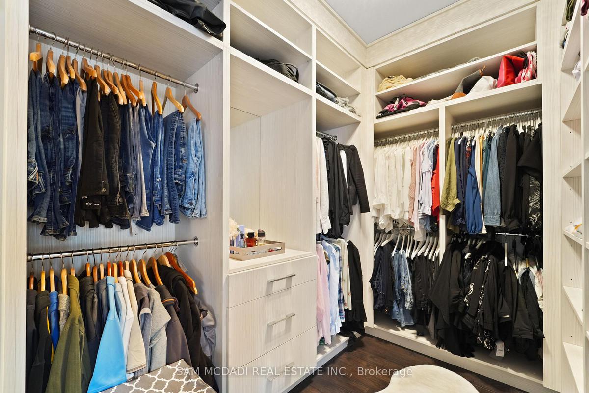 A very rare FURNISHED, truly turn key home. Step into exceptional craftsmanship and timeless design in this beautifully styled residence on nearly a half acre offered !!fully furnished!! - move-in ready with the stunning existing furniture. Approximately 4,500 sq ft of impeccably finished living space showcases 10' main-floor ceilings, 8' interior doors, and extraordinary millwork: generous trim, intricate moldings and custom woodworking throughout that reflect attention to detail unlike any home you've seen. Entertain and live luxuriously on the main level where a tucked-away office provides quiet work space and a chef's kitchen anchors the home. The kitchen features custom cabinetry with bespoke hardware, built-in appliances, an impressive waterfall quartz center island and quartz backsplash. It opens to a great room with built-in shelving, an intricate coffered ceiling and a showpiece fireplace and mantel. An accessory butler servery with wine fridge and sink makes hosting effortless. A very stylish separate dining room offers crown molding, chic wallpaper and wainscoting. Upstairs offers four bedrooms including the primary suite with a spa-like 5-piece ensuite and generous walk-in closet, two additional full bathrooms, and a striking bedroom with a 12' vaulted ceiling - bright, airy and refined living spaces designed for comfort and style. The lower level, with separate entrance, is ideal for guests or an in-law/nanny suite: kitchenette, bedroom, full bathroom and a large rec room anchored by a beautiful fireplace. Outside, the expansive nearly half-acre lot has inground sprinklers, a gorgeous covered porch with lighting, hot tub, stone facade wall with a fireplace and mount for a TV perfect for entertaining. Offered with the curated furniture and finishes that make this house a turnkey show-home.