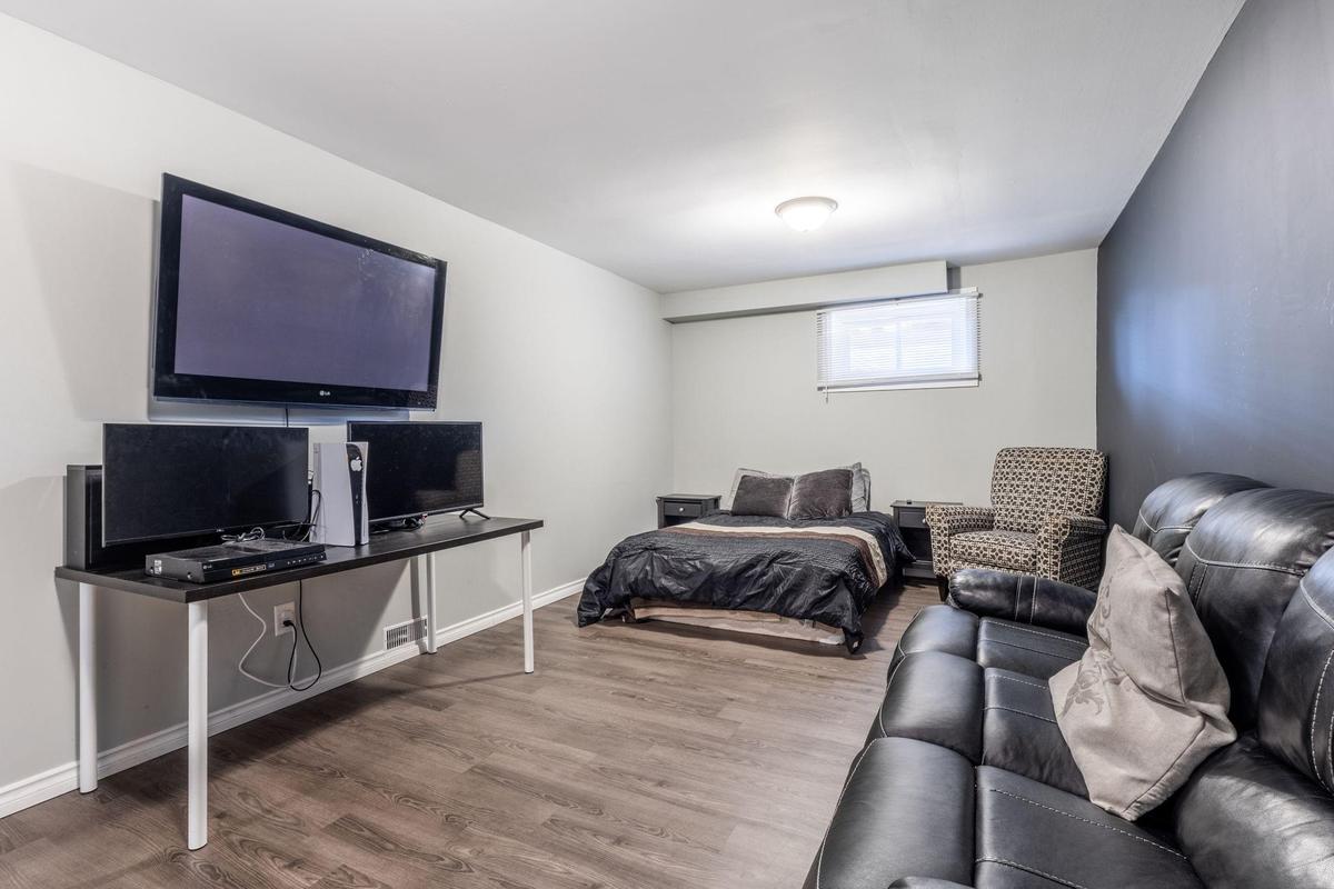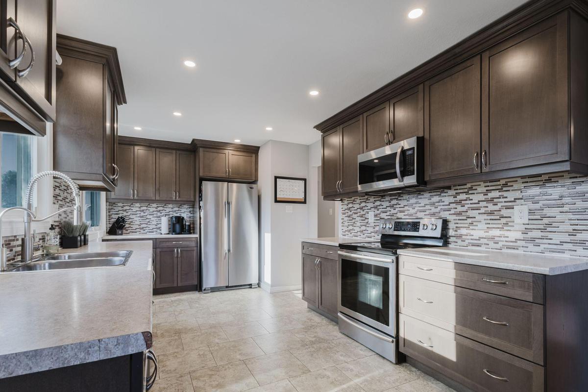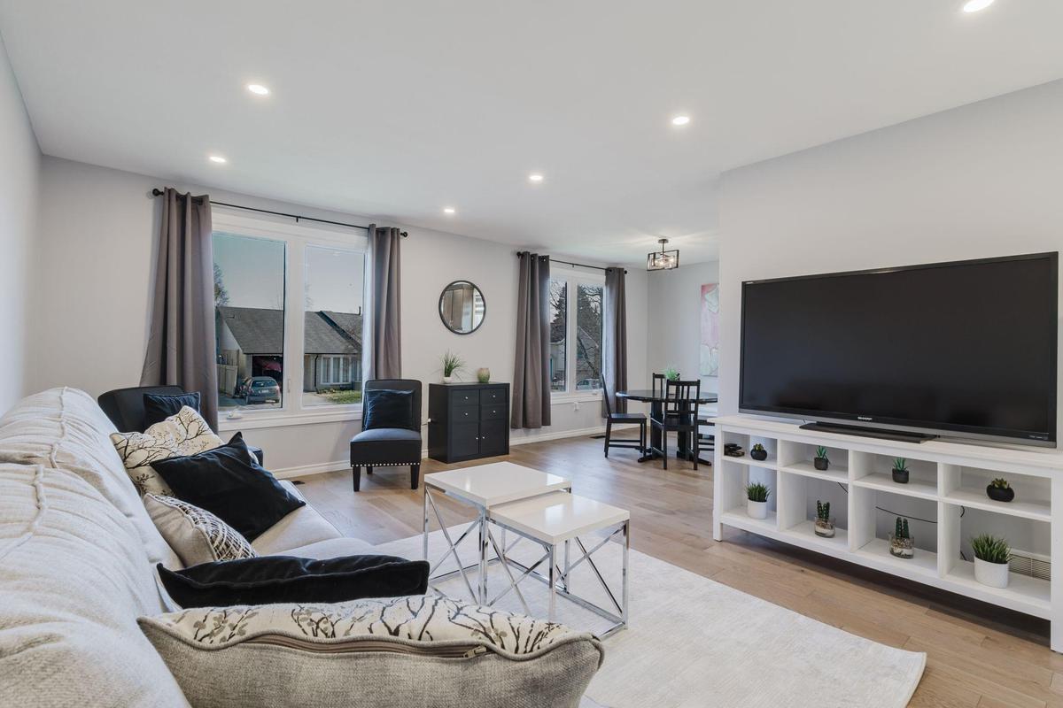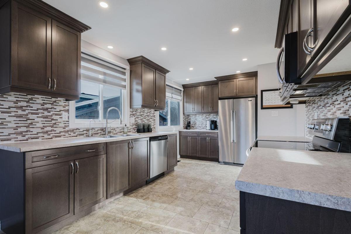 Located in the sought-after Greenbrier community, this beautifully updated raised bungalow is sure to impress. Set on a quiet, family-friendly street, this home offers 5 bedrooms (3 up and 2 down), 2 full bathrooms, and a fully finished basement-providing comfort, flexibility, and space for a growing family or multi-generational living. Step inside to a bright and welcoming main floor where large windows flood the space with natural light. The open-concept living and dining areas showcase warm plank flooring and a soft, neutral palette that creates an inviting atmosphere. The heart of the home is the stunning extended kitchen, thoughtfully designed for both style and functionality, featuring rich mocha shaker cabinetry, crown moulding, pot lights, and ample counter and storage space. The main level is complete with three generously sized bedrooms and a tastefully renovated 4-piece bathroom. Downstairs, the finished basement expands your living options with two additional bedrooms, a modern 3-piece bath, and versatile space ideal for a home office, recreation area, or guest suite. Outside, enjoy a private, fully fenced backyard-perfect for summer barbecues, entertaining friends and family, or unwinding by the firepit in peaceful surroundings. Blending elegant finishes with a practical, spacious layout, this home presents an exceptional opportunity you won't want to miss.