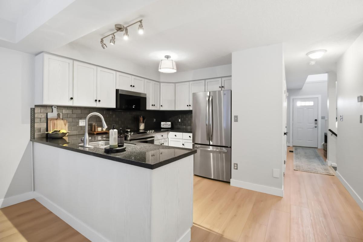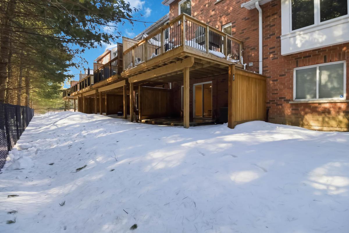 Welcome to 48-165 Terraview Crescent in the highly sought-after south end of Guelph-a beautifully updated 2-storey townhouse backing directly onto Preservation Park. Enjoy the rare privacy of no rear neighbours and immediate access to 65 hectares of scenic trails, forests, and meadows right from your backyard. This meticulously maintained home offers 3 bedrooms and 3.5 bathrooms with a bright, open-concept main floor designed for everyday living and entertaining. Stylish LVP flooring adds warmth and durability, while the walkout to the upper deck with desirable east and south exposure creates the perfect setting for morning coffee or relaxing summer evenings. The home has been thoughtfully upgraded for comfort and peace of mind, featuring newer windows, a sliding glass door, roof, central air conditioning, and water softener. An exterior gas line makes the BBQ season effortless. The finished basement with Dricore subflooring provides valuable additional living space-ideal for a rec room, home office, gym, or play area. The garage has been refreshed with epoxy flooring and paint, offering a clean and functional space. Set in a well-managed complex, this home offers the perfect blend of nature, convenience, and turnkey living-an exceptional opportunity in one of Guelph's most desirable communities.