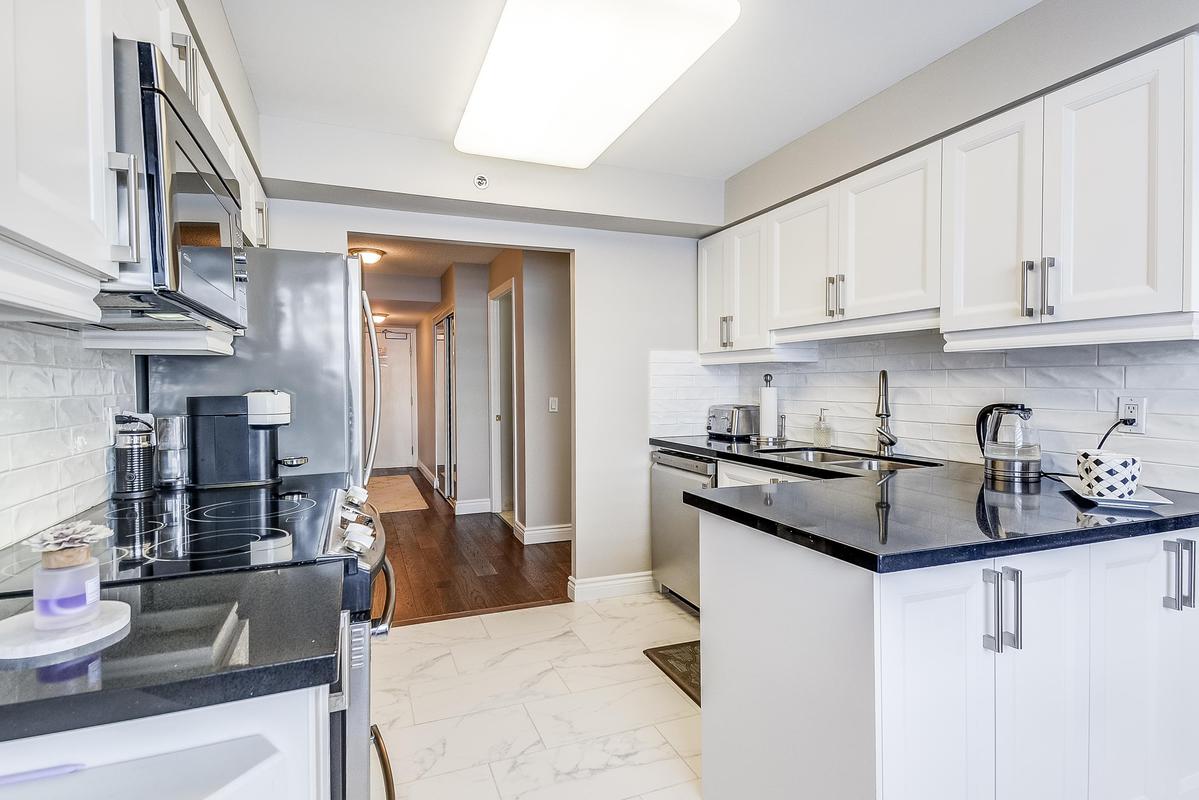 Welcome to Unit 1301 at Hearthstone by the Lake. This bright corner suite has all of the 'I Wants' from two spacious bedrooms and a den, and two baths to a spacious living/dining area allowing you to entertain graciously while enjoying walks along Lake Ontario, swimming or joining a fitness class, and socializing or sharing dinner with friends in the dining room. With a full calendar of wellness programs and social events, there's always an opportunity to connect and enjoy. The kitchen and dining area flow effortlessly into a generous living room, ideal for hosting elegant gatherings or enjoying quiet evenings at home. It is a resort-style lifestyle designed for people who value time, convenience, and social connections. The Club Membership/ Basic Service Package provides peace of mind, including a dining credit, some housekeeping, 24/7 emergency nursing, an emergency call system, and on-site handyman services. Residents enjoy exclusive access to a range of amenities that add to the sense of prestige and community: An indoor pool, fitness centre, library and billiards lounge, concierge services, and the beloved Pig & Whistle. With underground parking, a storage locker, and beautifully landscaped outdoor spaces, Hearthstone by the Lake offers more than just a condo. It is a community that combines security, prestige, and connection, giving you the freedom to live gracefully while knowing support is always close at hand.