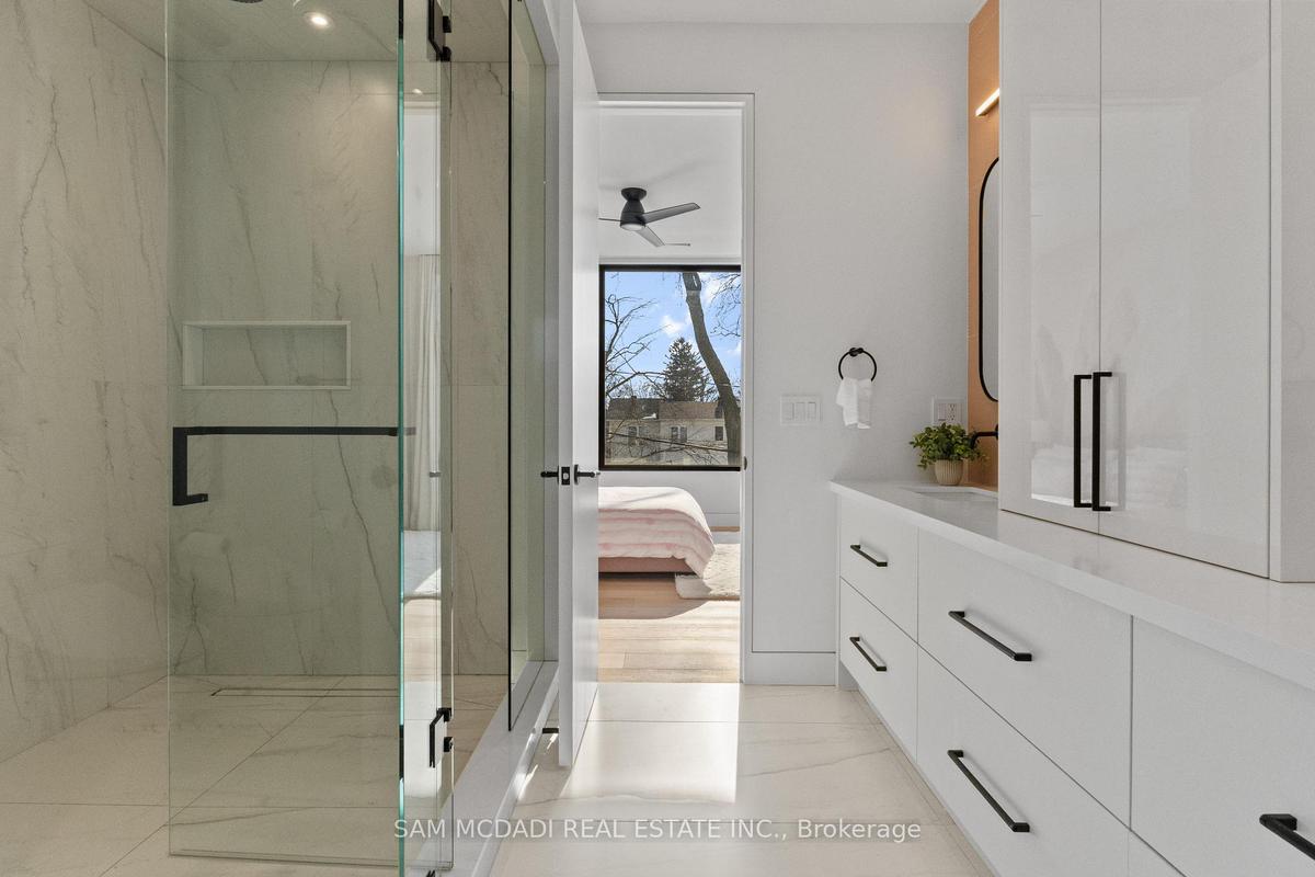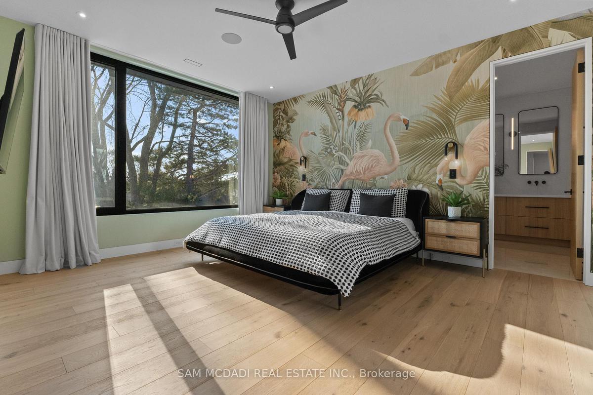 Welcome to 2186 Harcourt Crescent, an architectural triumph in the heart of Lakeview. Completed in 2023, this residence offers 5700 sqft of impeccably curated living across three beautifully finished levels. This 4+1 bedroom, 5.5 bath home is a masterclass in craftsmanship and innovation. A dramatic 44-inch custom mahogany front door opens to a grand foyer with large-format porcelain tile and soaring 10-foot ceilings. The main and upper levels feature wide-plank white oak floors, while premium porcelain tile enhances all baths. Integrated vents, flush-mount baseboards, and seamless trims create a refined, gallery-like aesthetic throughout. Custom white oak doors and a striking architectural white oak staircase with custom-forged railing anchor the home's modern elegance. Custom millwork showcases a curated mix of Rift Cut White Oak and state-of-the-art AGT matte-finish cabinetry, known for its anti-fingerprint and antibacterial properties. Caesarstone quartz surfaces elevate the chef's kitchen, butler's pantry, custom bar, and all bathrooms. The kitchen is a true centerpiece, featuring a curved oversized island and hood vent clad in rift cut white oak, matte porcelain backsplash, and premium panelled appliances. A stunning 12' x 9' sliding glass door opens to the covered patio, complete with motorized screens, gas fireplace, media connectivity, and built-in Hestan BBQ, offering a true three-season retreat. The fully finished lower level includes an additional bedroom with ensuite, glass-enclosed gym, rec room, custom wet bar, steam shower, and walk-up access to the backyard. Outdoors, enjoy a 35' x 15.8' Barrier Reef fiberglass pool with integrated lounger, WiFi-enabled controls, and maintenance-free turf. Enhanced by expansive European aluminum windows, Control4 smart system, theatre-grade surround sound, spray foam insulation, built-in alarm system, motorized main floor blinds and more, this extraordinary residence delivers uncompromising luxury and peace of mind.