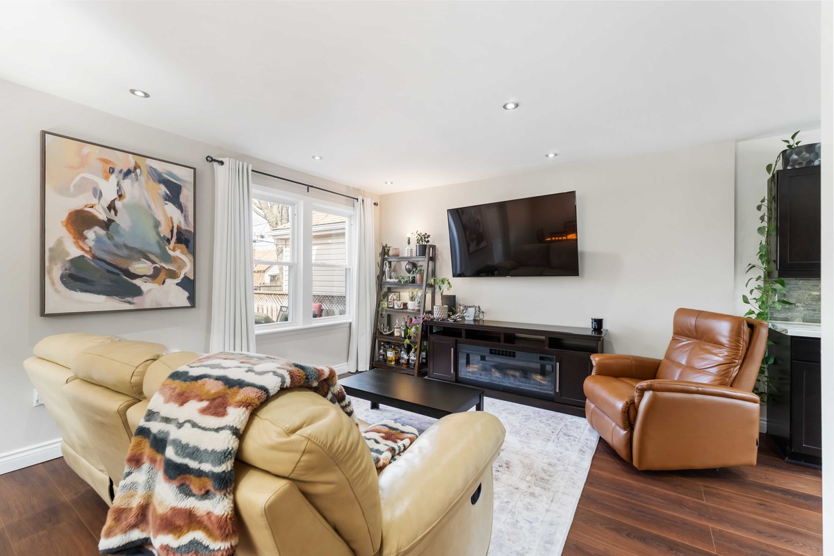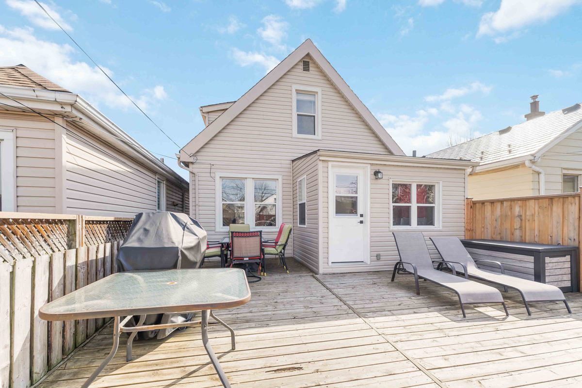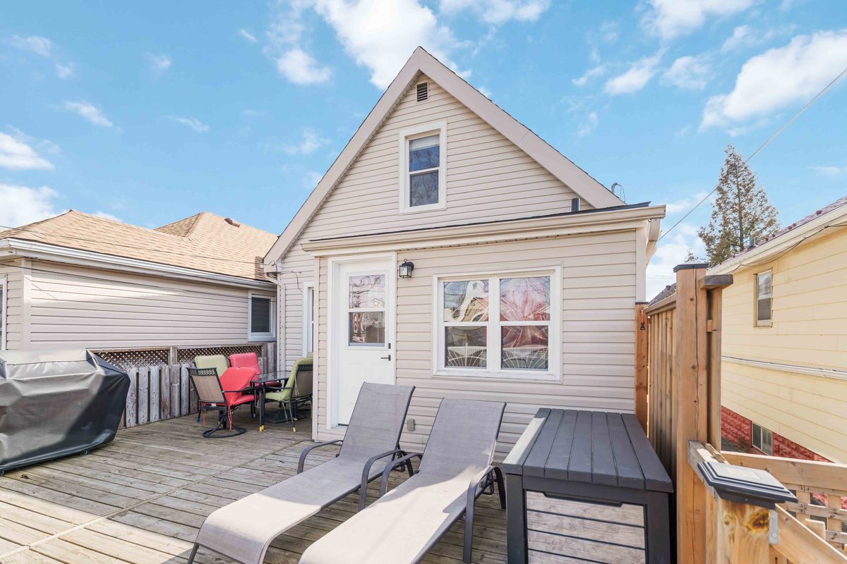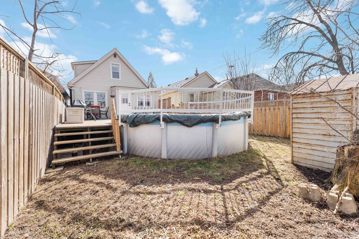 Welcome to 54 Weir Street South, nestled in the highly desirable East Hamilton neighbourhood. This charming home offers the perfect balance of comfort, thoughtful updates, and a family-friendly location just steps from Montgomery Park. Enjoy your morning coffee on the welcoming front porch, spend sunny afternoons relaxing in the backyard by the above-ground pool, and take evening walks through the nearby park with family and friends. Inside, the main floor showcases a cleverly concealed wine rack hidden behind the entrance mirror, adding a distinctive and functional design feature. The space continues into a warm and inviting living and dining area filled with natural light from large windows, alongside a beautifully renovated kitchen designed for both everyday living and effortless entertaining. The kitchen features updated cabinetry with thoughtfully added drawers, providing enhanced storage and organization. Convenient main-floor laundry and a stylishly updated 2-piece bathroom add to the home's functionality. The staircase has been upgraded with laminate flooring and thoughtfully enhanced with additional storage beneath the landing. Upstairs, you'll find two generously sized bedrooms filled with natural light, along with an updated bathroom. The upper level was refreshed with new flooring, paint, and a new closet in the primary bedroom. The basement offers additional living space with a versatile den or rec room, mechanical/utilities & storage areas. Outside, the property has also been enhanced with a new front porch, parking for two vehicles (2023), new fencing that fully encloses the yard, and updated deck stairs. The above-ground pool has been well maintained with upgraded equipment (2021-2024), making the backyard a perfect space to relax and entertain. Ideally located close to schools, shopping, restaurants, public transit, and with quick access to the Red Hill Valley Parkway, commuting to Toronto or Niagara is simple. A wonderful opportunity to own a beautifully maintained home in a vibrant and convenient community.