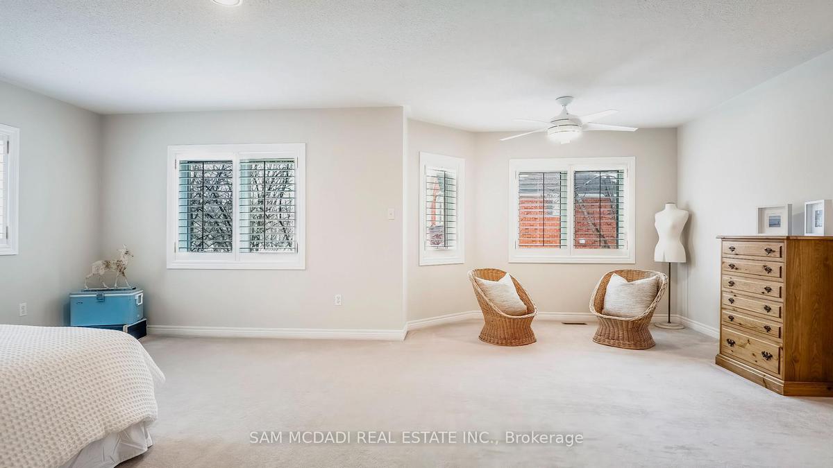 Exceptional opportunity in highly sought-after Central Erin Mills. This immaculate executive family home sits on an impressive 61x124 ft lot and offers 3,527 sf above grade with prodigious living spaces that flow from room to room. Inside, you'll find a mixture of hardwood, tiled, and broadloom floors, large windows elevated with California shutters for both style and privacy, ample closets for storage, beautiful French doors, and more. The kitchen is the heart of this home, which overlooks the family room with gas fireplace, and offers ample upper and lower cabinetry space, a breakfast area, and direct access to your charming backyard oasis designed with a professionally laid patio, a seating area, and an in-ground sprinkler system. The main level also caters to work from home professionals, featuring an office and a combined living and dining area perfect for big family gatherings. Make your way upstairs via the circular staircase and into the Owner's suite, where you'll find a comfortable seating area, a large walk-in closet, and a spa-like 5pc ensuite. Four more bedrooms, each with Jack and Jill ensuites and spacious closets, are down the hall. The partially finished basement offers space for endless possibilities - a large recreation room, a home gym, a theatre, or any additional living space you've envisioned. For car enthusiasts, this home is designed with a 2-car garage and parking for 4 on the driveway, for a total of 6 vehicles. Prime location, ideally situated near top-rated schools like John Fraser Secondary School, parks, shopping centres, and all major amenities. Several key updates incl: new roof (2010), new windows (2019) w/ triple glazing in high solar exposure areas and double glazing elsewhere, new driveway (2024), new A/C system (2025).