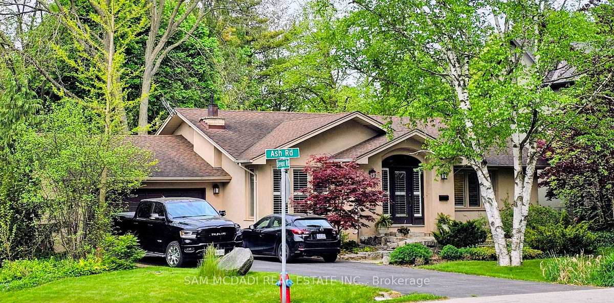 Look no further! Here's your opportunity to move into a beautifully maintained bungalow, nestled among towering trees in one of Southern Ontario's most sought-after communities. Set on a stunning, fully landscaped lot measuring 73.82 ft x 139.13 ft x 102.59 ft x 142.29 ft, 388 Ash Road in Southeast Oakville offers exceptional comfort, style, and location.The home features a sun-filled, renovated kitchen with stainless steel appliances and granite countertops, updated bathrooms, and an impressive primary suite complete with a custom closet and a stylish 4-piece ensuite. Additional highlights include hardwood floors, crown moulding, built-in cabinetry, gas fireplaces, and many other thoughtful upgrades throughout.The professionally finished basement adds even more living space, featuring a picturesque double-slider walkout, an additional bedroom with a semi-4-piece bathroom, a spacious laundry room, powder room, and a large storage area.All of this is ideally located just minutes from the charming shops, parks, and scenic nature trails of downtown Oakville.Enjoy The Nearby Waterfront Trails Or Relax In Your Backyard Oasis. Sought After South Oakville School District.