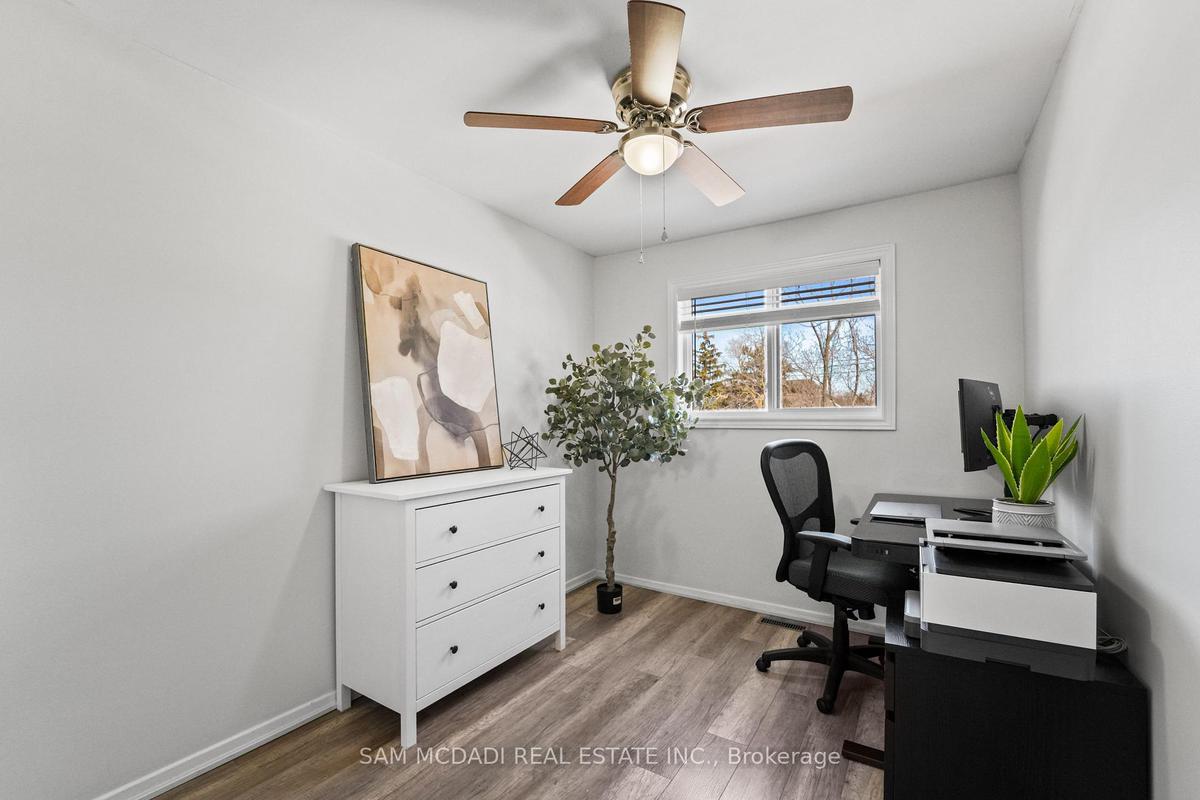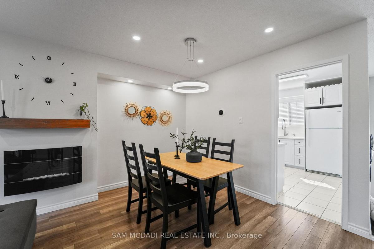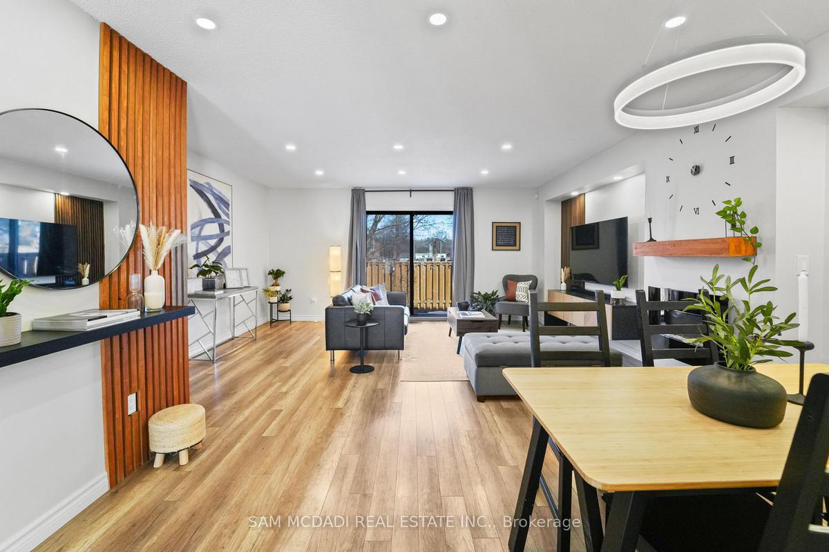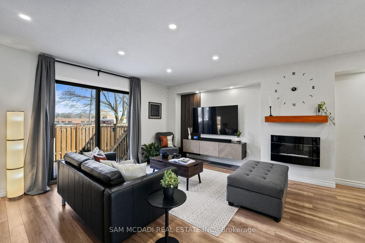 Welcome home! This beautifully updated, two-story condo townhouse nestled in Oakville's desirable College Park community offers nearly 1,200 square feet above grade with a bright, open-concept layout for owners to enjoy. Make your way inside and be mesmerized by the combined living and dining areas elevated with LED pot lights, luxury vinyl hardwood floors, and seamless entry to the backyard stone patio completed in 2025 - a perfect space for al-fresco dining with loved ones. The kitchen is a cook's dream with quartz countertops and ample upper and lower cabinetry space for all of your culinary essentials. Ascend to where you'll find 3 generously sized bedrooms, including the primary retreat with mirrored closets. The redesigned 4-pc bathroom features modern touches including sleek quartz countertops, a built-in linen closet, and a combined shower/tub with rainfall shower. The completed basement adds valuable space to this home with a convenient powder room and a dedicated laundry area. Immaculately kept and thoughtfully updated throughout, featuring a new furnace installed in 2021, a heat pump installed in 2023, and attic insulation updated in 2023. Superb location, minutes from great schools, grocery stores, Oakville Public Library, Oakville Place mall, Sheridan college, and major highways like hwy 403 and QEW. A move-in ready must see for young families, first-time buyers, or investors alike!
