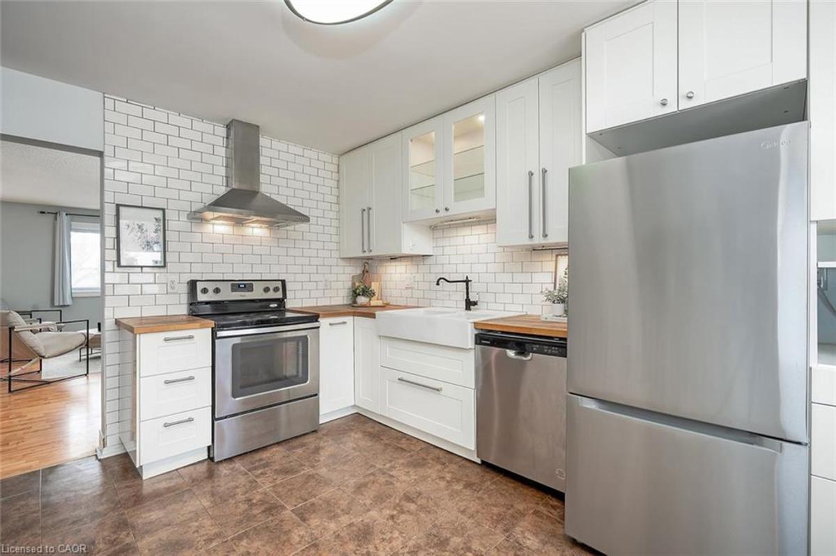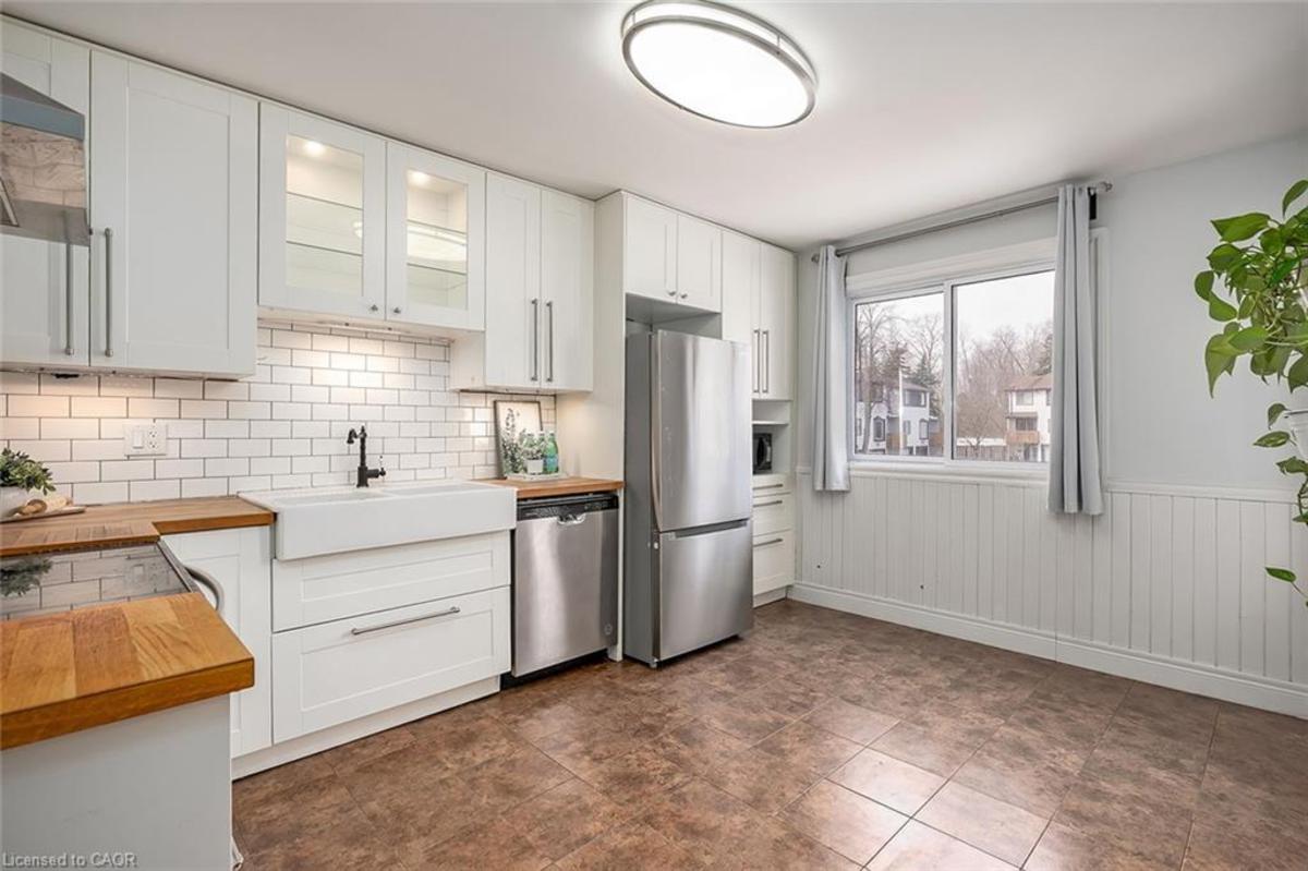 Discover this beautifully updated 3-storey townhome in the highly sought-after Meadowvale community. Featuring 3 spacious bedrooms and 2 bathrooms, this home offers the perfect blend of comfort, style, and functionality-ideal for families or first-time buyers. Step inside to a thoughtfully refreshed interior complete with newer vinyl and laminate flooring, new baseboards throughout, and a fresh coat of paint that creates a bright, modern atmosphere. The updated kitchen is both stylish and practical, showcasing a subway tile backsplash, upgraded hardware, under-cabinet lighting, sleek stainless steel appliances, and ample storage space. The look is beautifully finished with newer, stylish light fixtures throughout the home. Recent quality upgrades provide added peace of mind, including updated electrical, windows (2021), Bath Fitter vinyl tiles in the upstairs bathroom, roof (2023), furnace/heating unit (2017), and air conditioner (2025), plus more. Enjoy added value with maintenance fees that include water, cable TV, and internet. The functional layout features formal living spaces ideal for entertaining, along with a convenient walk-out from the lower level and two private balconies-perfect for relaxing or enjoying outdoor space. Within the complex there is a children's park! Situated in a desirable neighbourhood close to community centre, schools, shopping, and transit, GO station, and major highways, this move-in ready home is an exceptional opportunity you won't want to miss.