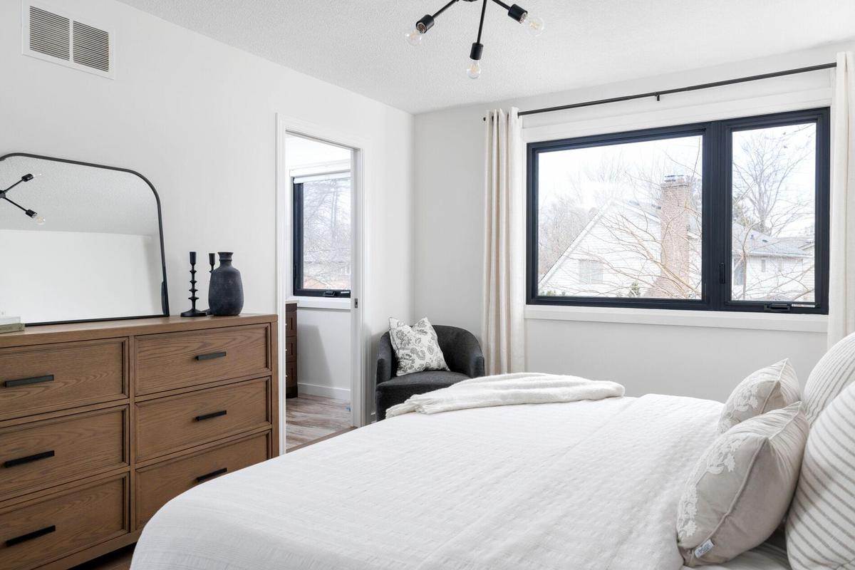 Welcome to 181 Chalmers Street, a beautifully renovated home nestled in the heart of Bront"É´. Thoughtfully renovated from top to bottom, this property seamlessly blends classic charm with modern finishes. Striking black-framed windows perfectly complement the timeless brick exterior, while inside, hardwood flooring, designer lighting, and contemporary finishes flow throughout. With 1,936 sqft of total living space. Enter into the spacious foyer with newly crafted staircase enhancing the home's timeless appeal. The generously sized living room is framed by the striking windows that act as a focal point. Proper dining room with Restoration Hardware Lighting, walk-out to garden, and direct kitchen access make this the perfect gathering space. The renovated kitchen includes quartz countertops, water filtration system, under cabinet lighting, and Coffee bar, Upstairs, you'll find three generously sized bedrooms, including a primary suite complete with wall lined built-in wardrobe and private ensuite w/ separate glass enclosed shower. The fully finished basement offers exceptional versatility, featuring a spacious recreation area, a dedicated private office, laundry room with LG appliances, mounted television, and rough-in plumbing for potential 4th washroom, and ample storage - ideal for growing families or those working from home. Step outside to a private backyard and enjoy a stone patio for outdoor entertaining, thoughtfully designed garden beds, a convenient storage shed, new stone walk-way, and mature trees that provide both ambiance and privacy. Perfectly suited for young families or those looking to "right size," this turn-key home offers a true sense of community. Surrounded by scenic walking trails, parks, top restaurants, and friendly neighbours. Welcome Home.