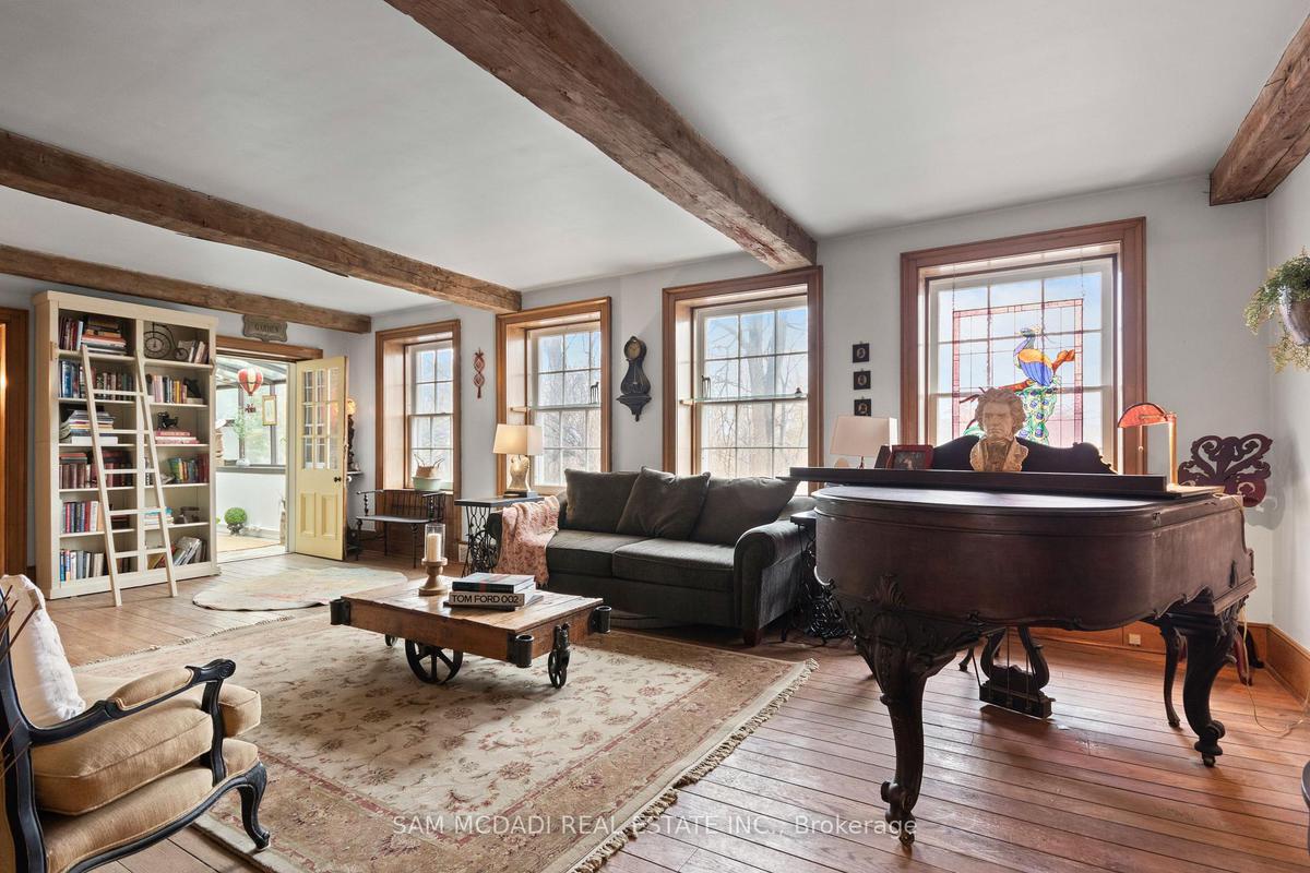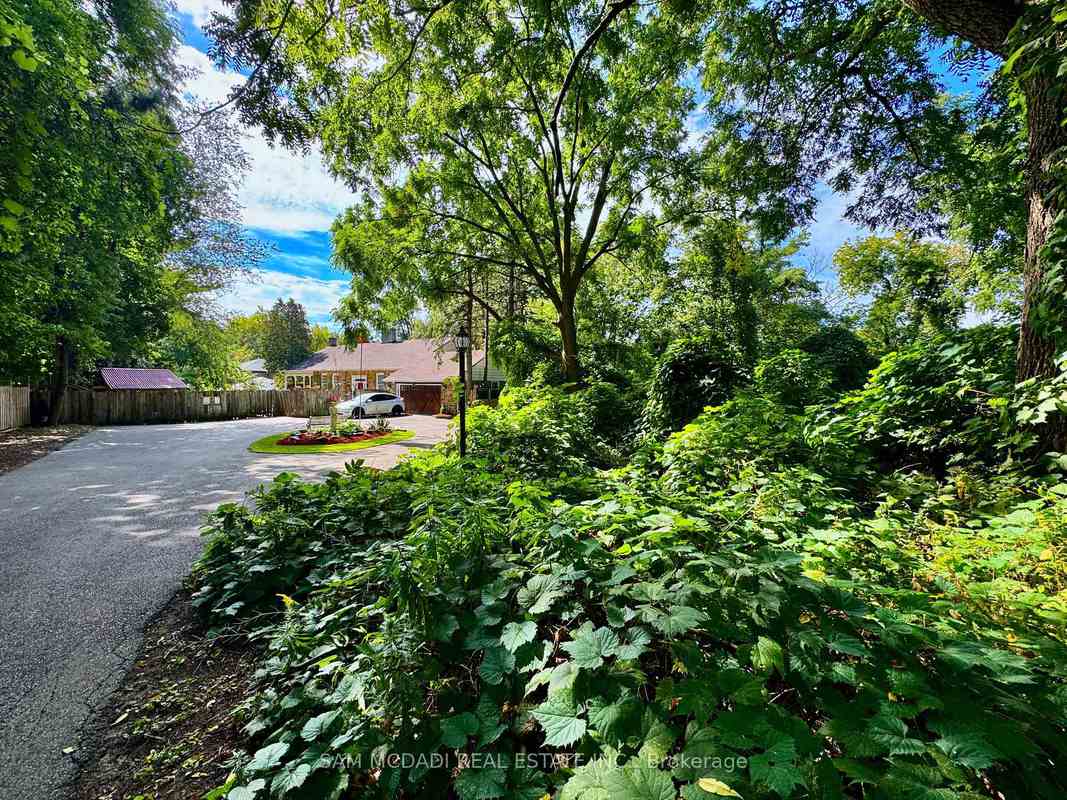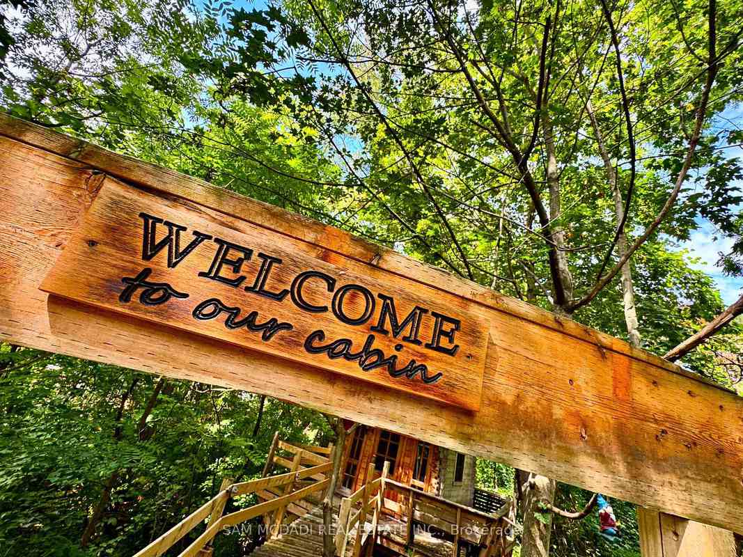 Welcome to 85 Yorkleigh Avenue, a rare offering set on an extraordinary 1.15-acre lot backing onto the Humber Creek ravine. Surrounded by mature trees and complete privacy, this property offers a lifestyle seldom found within the city. The home's stone façade, manicured gardens, and inviting front porch create a setting that feels elegant, character-rich and grounded in nature. Inside, the home unfolds with distinctive timeless charm. The eat-in kitchen is a statement space, featuring exposed wood beams, a wood-burning fireplace, classic checkered flooring, and a seamless walkout to the grounds. The dining room is designed for intimate entertaining, complete with its own fireplace and custom built-ins, while the living room showcases a striking stone hearth and direct access to the sunroom. Wrapped in glass, the sunroom offers a tranquil, light-filled escape, perfect for year-round enjoyment with serene views of the surrounding ravine canopy. The main level features two bedrooms, including a peaceful primary retreat with double closets, alongside a well-appointed 3-piece bath. A vaulted loft above provides a versatile space ideal for guests, a studio, or a private hideaway. The walk-out lower level expands the home's functionality with a third bedroom, an office, 3-piece bath, laundry, and terra cotta stone flooring throughout, well-suited for extended family or flexible living arrangements. Outdoors, the grounds are no thing short of exceptional. Multiple seating areas, curated gardens, and natural pathways lead you through a private, tree-lined setting. Tucked within the ravine, a charming elevated treehouse offers a storybook 1 bedroom with a 3-piece bath retreat, a rare and whimsical feature that captures the essence of this unique property. Ideally positioned near Douglas B. Ford Park and the scenic Humber River Recreational Trail, with convenient access to reputable schools, shopping centres and easy access to Highway 401 and 427.