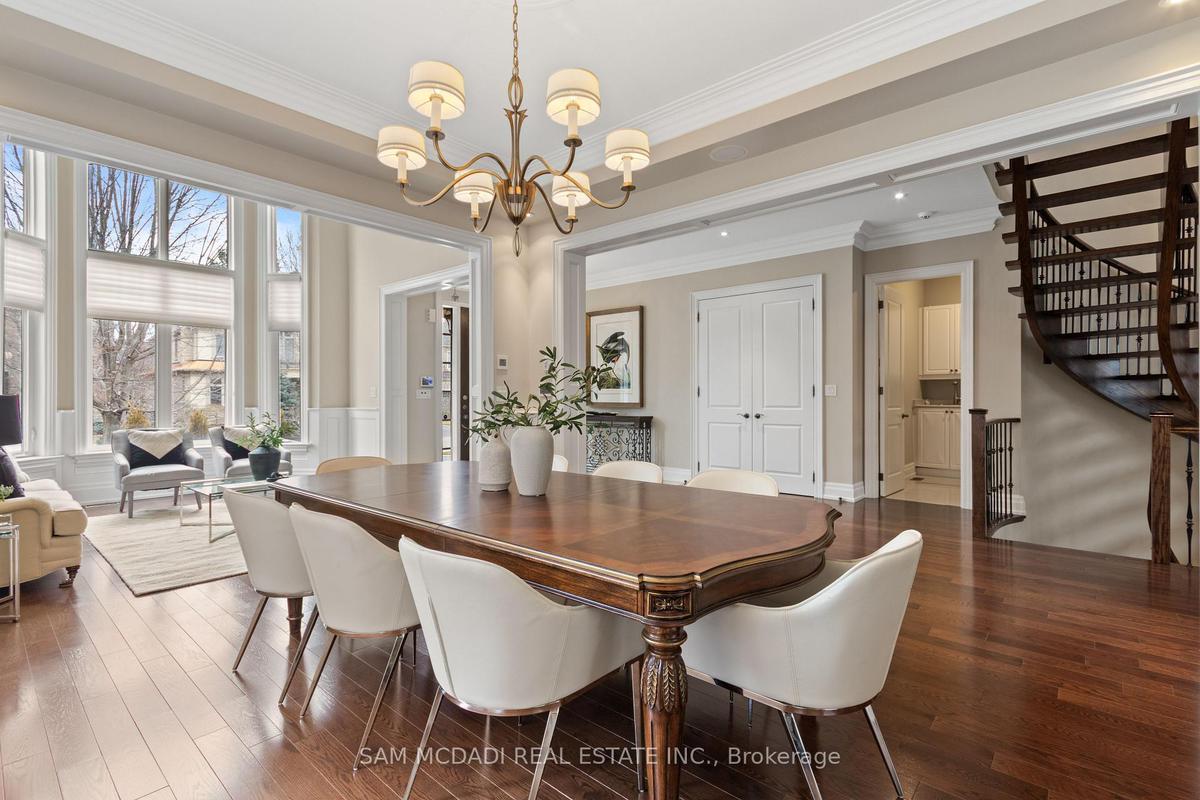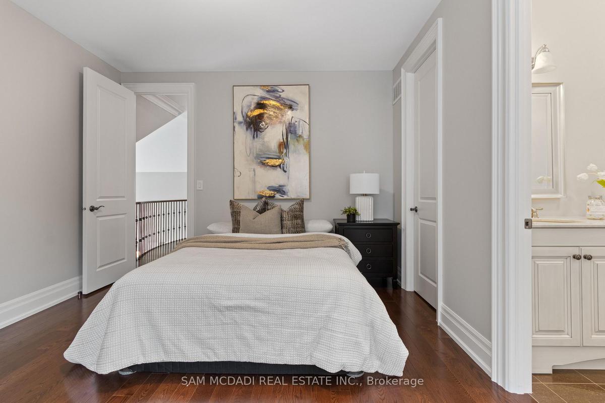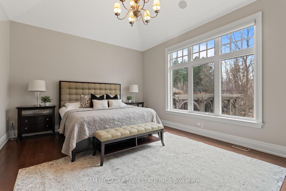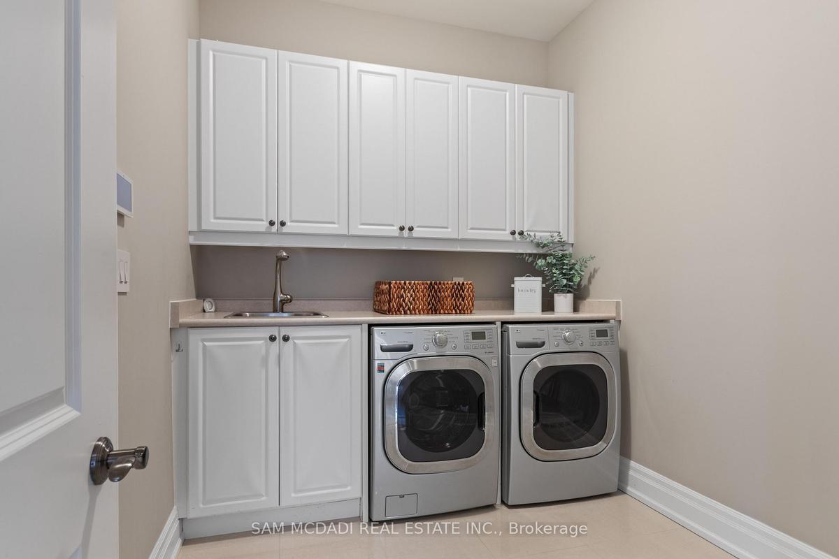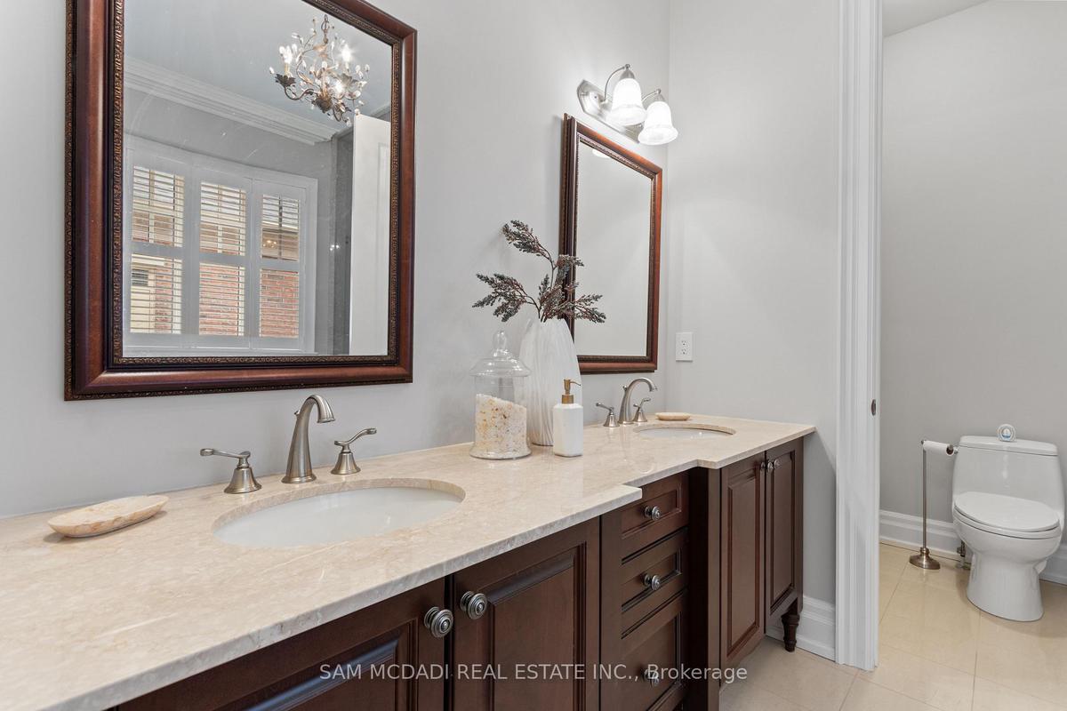 Welcome to this exceptional, executive residence on a quiet court in one of Mississauga's most sought-after enclaves. Backing onto a serene, private forest setting, this home offers the perfect blend of luxury, comfort, and timeless design ideal for discerning buyers seeking refined main-floor living. The moment you enter, you are greeted by a grand foyer with soaring 10-ft ceilings, elegant crown moulding, custom wainscoting and architectural detailing that carries throughout the home. The formal living and dining rooms impress with cathedral ceilings, designer lighting, and upscale finishes perfect for entertaining in style. At the heart of the home is a chef-inspired kitchen featuring premium appliances, custom cabinetry with illuminated uppers, a large granite peninsula and a seamless flow into the breakfast area and great room. The open-concept layout is enhanced by expansive windows showcasing tranquil views of the lush backyard and forest beyond. Designed with convenience and long-term comfort in mind, the main floor primary suite is a true retreat. Boasting a vaulted ceiling, spa-like ensuite with soaker tub and glass shower and a custom walk-in closet, this space offers privacy and ease of living rarely found in homes of this caliber. The upper level features a spacious loft area and generously sized bedrooms, including a private ensuite and a Jack & Jill bath ideal for family or guests. The professionally finished basement extends the living space with 9-ft ceilings, a guest bedroom with ensuite, a large recreation room with fireplace, a den, and a well-appointed kitchenette perfect for extended family or entertaining. Outdoors, enjoy a beautifully landscaped property complete with a two-tier deck, custom pergola and elegant stonework all backing onto nature for ultimate privacy. This is a rare offering combining luxury, functionality, and an ideal layout for those seeking the ease of main-floor living without compromising on space or elegance.