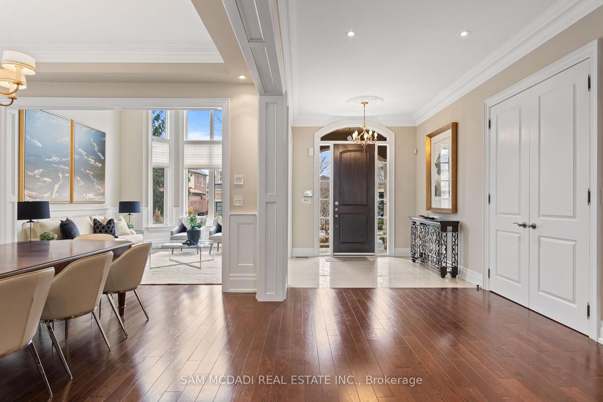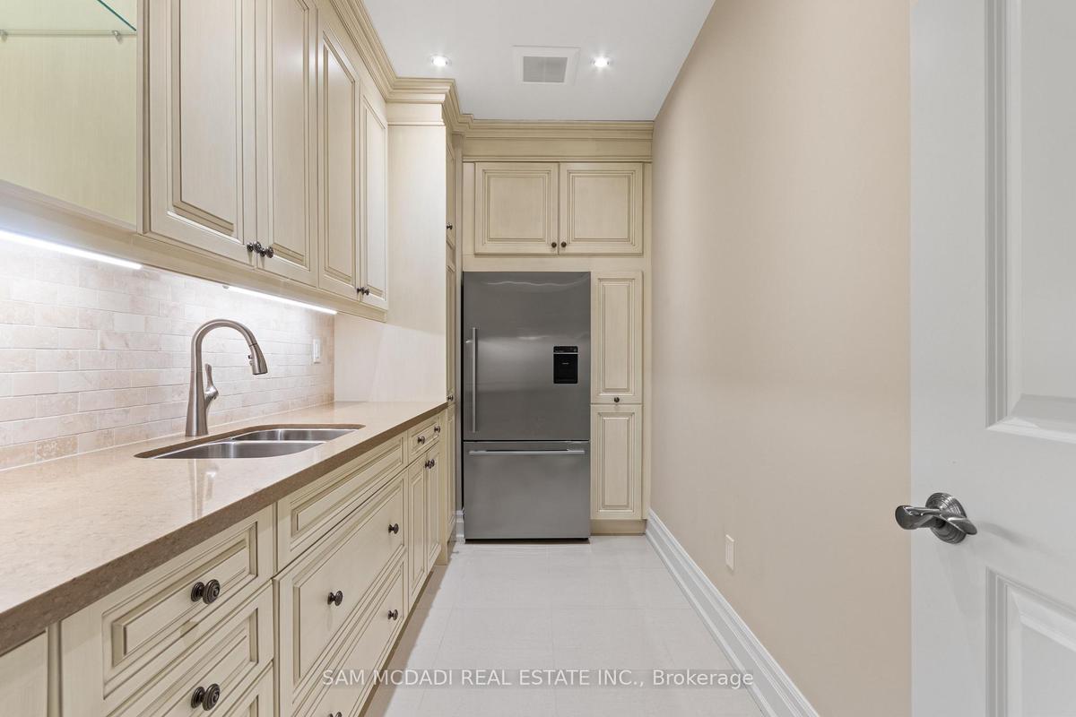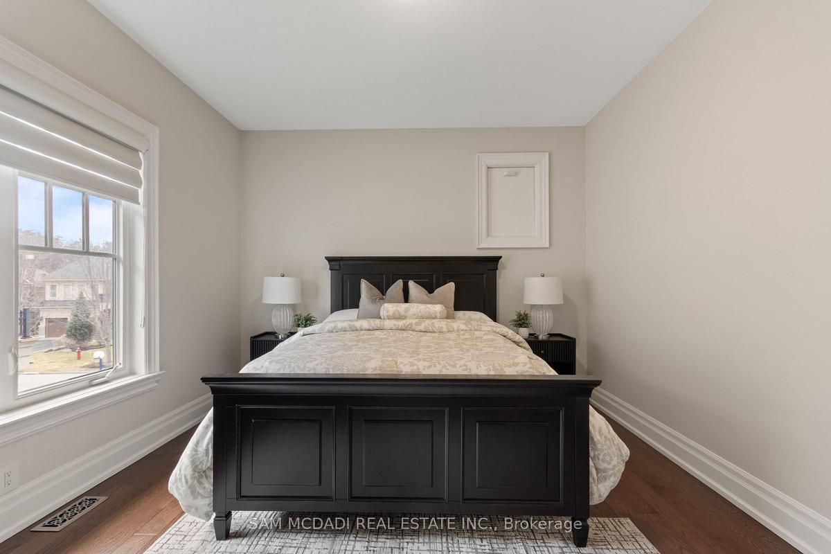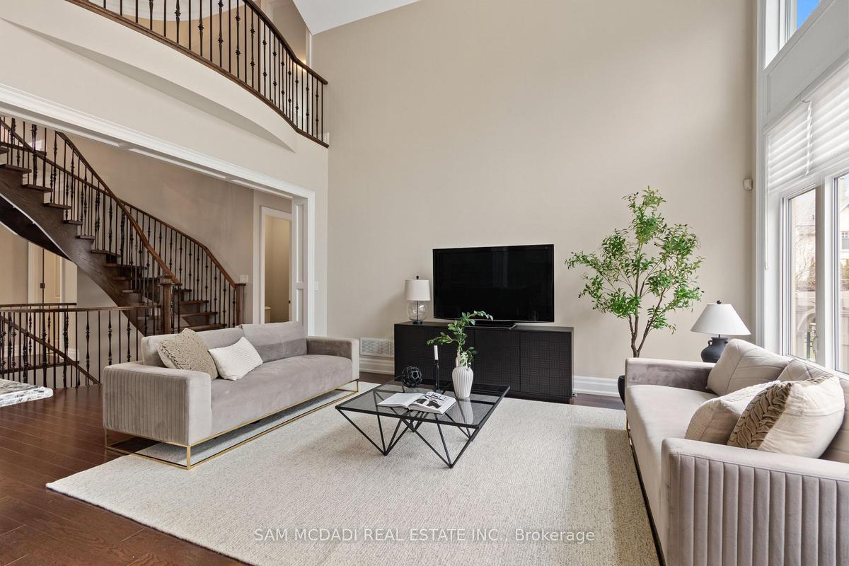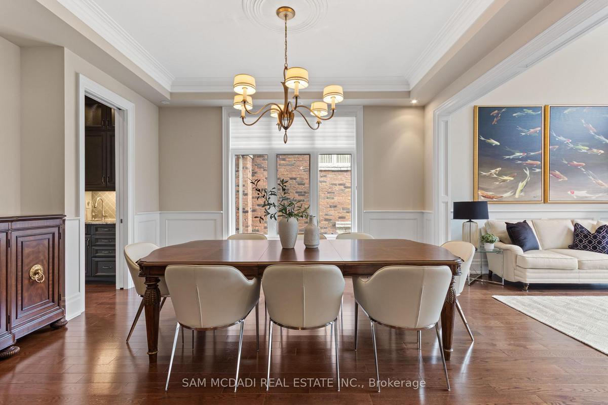 Welcome to this exceptional, executive residence on a quiet court in one of Mississauga's most sought-after enclaves. Backing onto a serene, private forest setting, this home offers the perfect blend of luxury, comfort, and timeless design ideal for discerning buyers seeking refined main-floor living. The moment you enter, you are greeted by a grand foyer with soaring 10-ft ceilings, elegant crown moulding, custom wainscoting and architectural detailing that carries throughout the home. The formal living and dining rooms impress with cathedral ceilings, designer lighting, and upscale finishes perfect for entertaining in style. At the heart of the home is a chef-inspired kitchen featuring premium appliances, custom cabinetry with illuminated uppers, a large granite peninsula and a seamless flow into the breakfast area and great room. The open-concept layout is enhanced by expansive windows showcasing tranquil views of the lush backyard and forest beyond. Designed with convenience and long-term comfort in mind, the main floor primary suite is a true retreat. Boasting a vaulted ceiling, spa-like ensuite with soaker tub and glass shower and a custom walk-in closet, this space offers privacy and ease of living rarely found in homes of this caliber. The upper level features a spacious loft area and generously sized bedrooms, including a private ensuite and a Jack & Jill bath ideal for family or guests. The professionally finished basement extends the living space with 9-ft ceilings, a guest bedroom with ensuite, a large recreation room with fireplace, a den, and a well-appointed kitchenette perfect for extended family or entertaining. Outdoors, enjoy a beautifully landscaped property complete with a two-tier deck, custom pergola and elegant stonework all backing onto nature for ultimate privacy. This is a rare offering combining luxury, functionality, and an ideal layout for those seeking the ease of main-floor living without compromising on space or elegance.